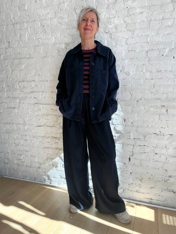 Deze blauwe tooper is een veelzijdig kledingstuk dat moeiteloos de grens tussen overhemd en jas vervaagt. Uitgevoerd in een diepe, donkere blauwzwarte tint straalt dit item kracht en subtiliteit uit, terwijl de relaxte pasvorm zorgt voor een moderne, nonchalante look. De grote borstzakken en de zichtbare stiksels geven het ontwerp een uitstraling die zowel functioneel als stijlvol is.