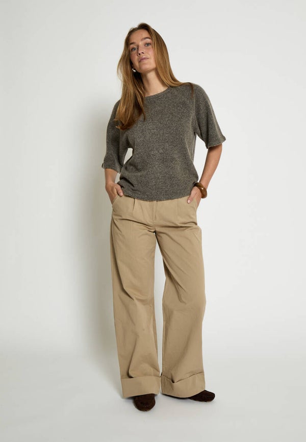 Dit mooie walnootbruin truitje met 1/2 mouwen is niet alleen superzacht, maar ook zeer trendy en stijlvol