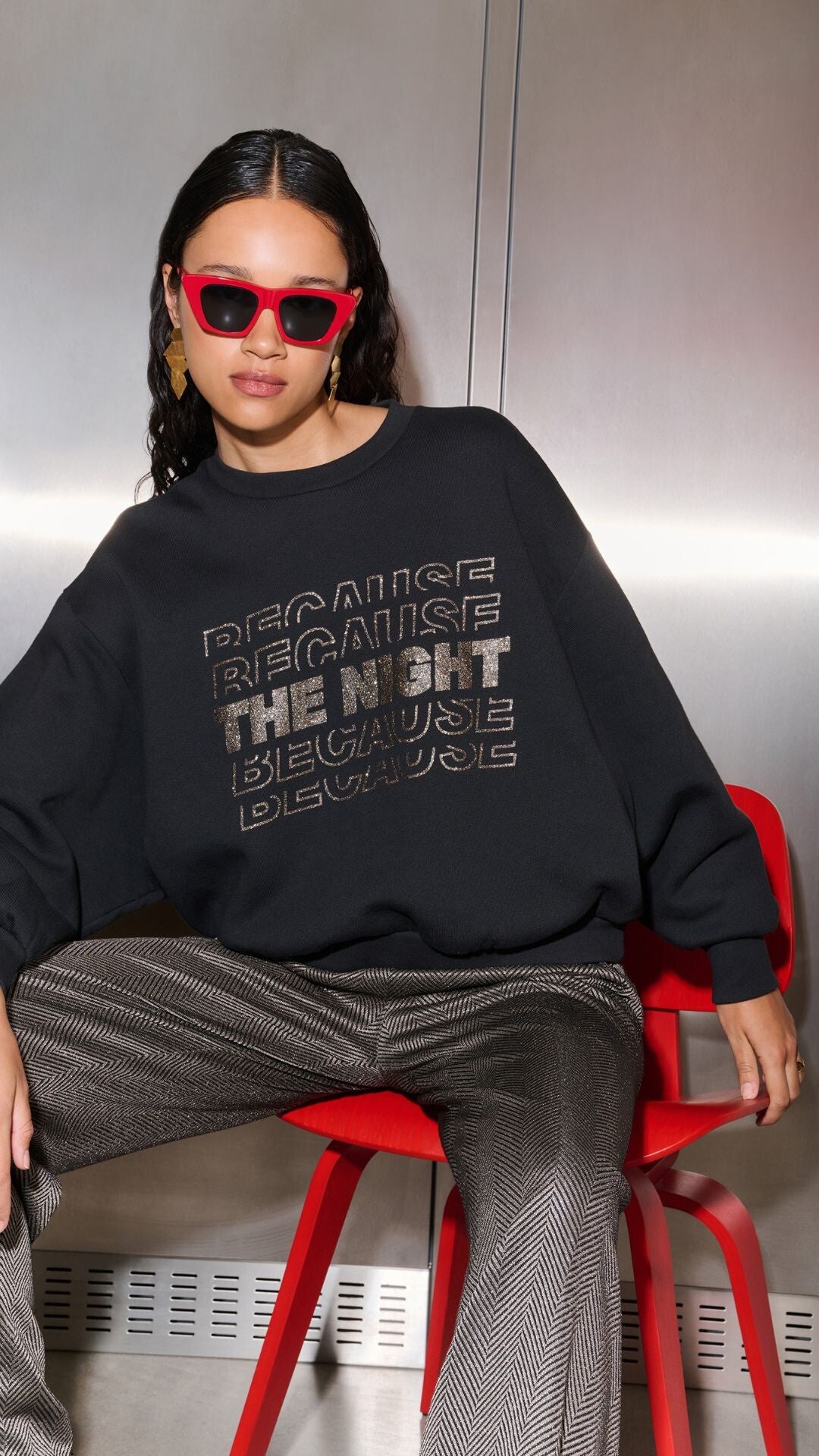Voeg een sparkling touch aan je garderobe toe met deze coole sweater! Met een losvallende pasvorm en verlaagde schoudernaden biedt deze oversized sweater ultiem draagcomfort. De ronde halslijn en lange mouwen maken het perfect voor een relaxte look. Gemaakt van duurzame materialen en een groot artwork op de voorkant, is dit een must-have voor wie stijl en comfort wil combineren.
