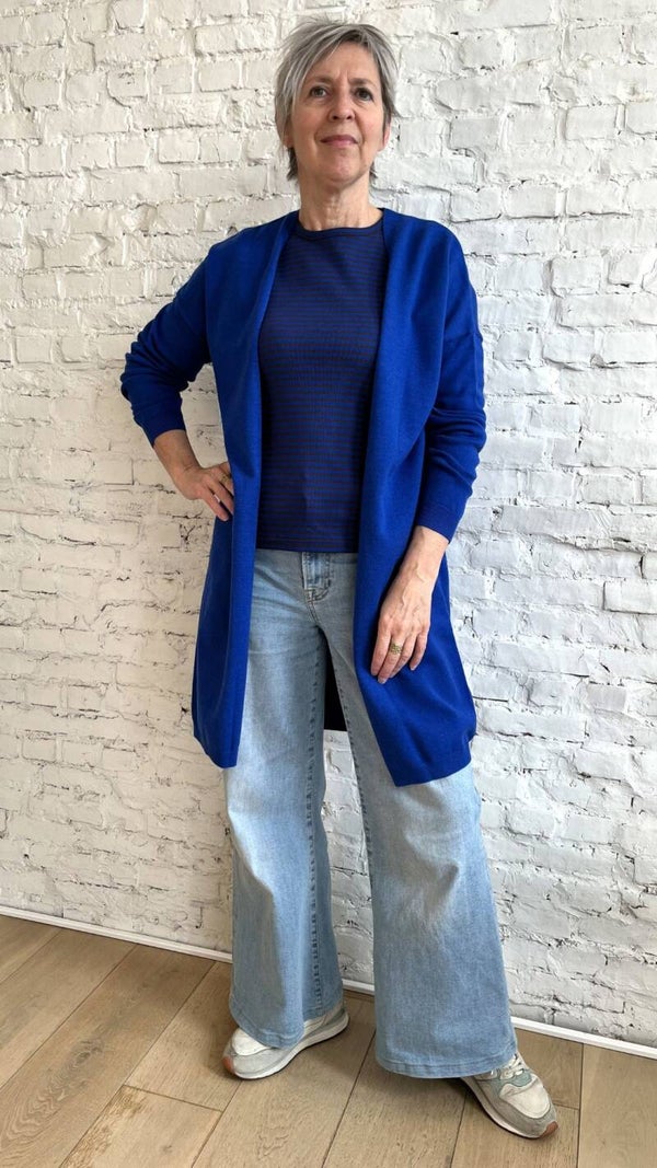 Deze t-shirt met kobaltblauwe streepjes is super zacht en comfortabel. De t-shirt is gemaakt uit biokatoen