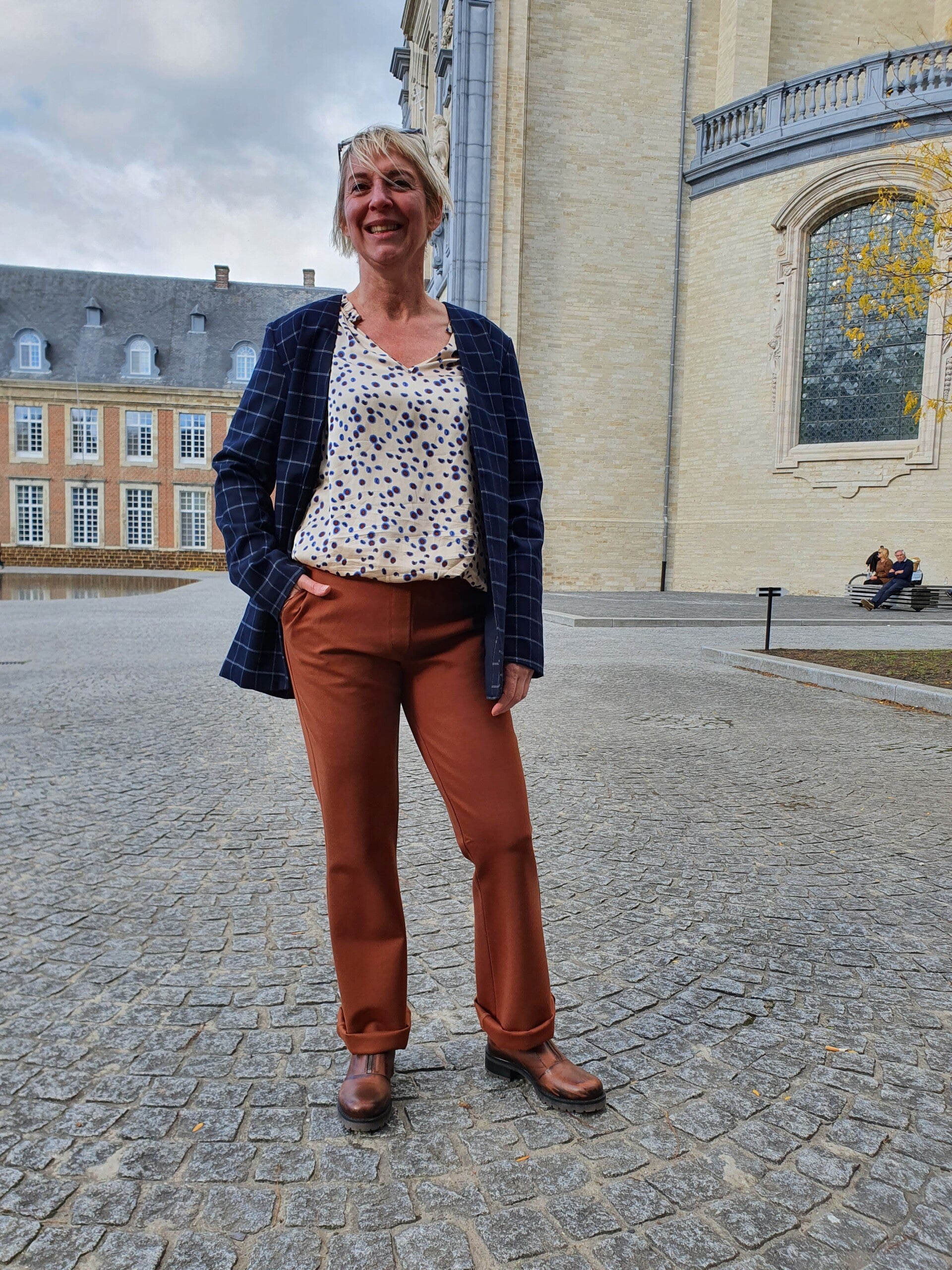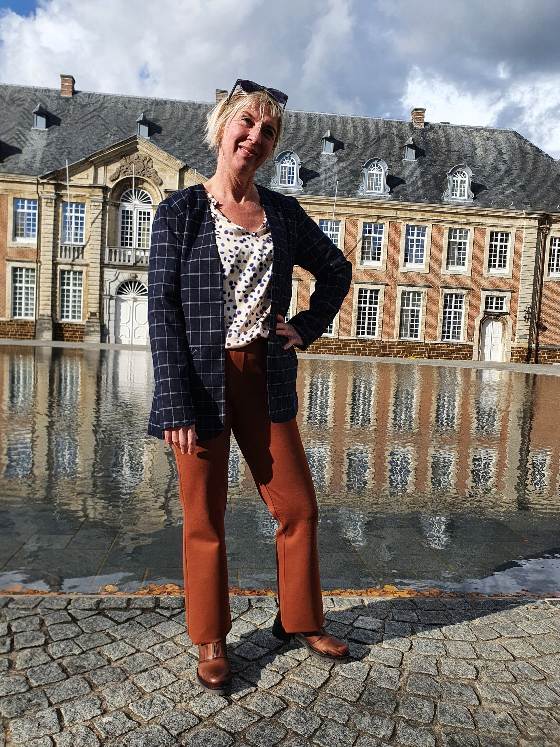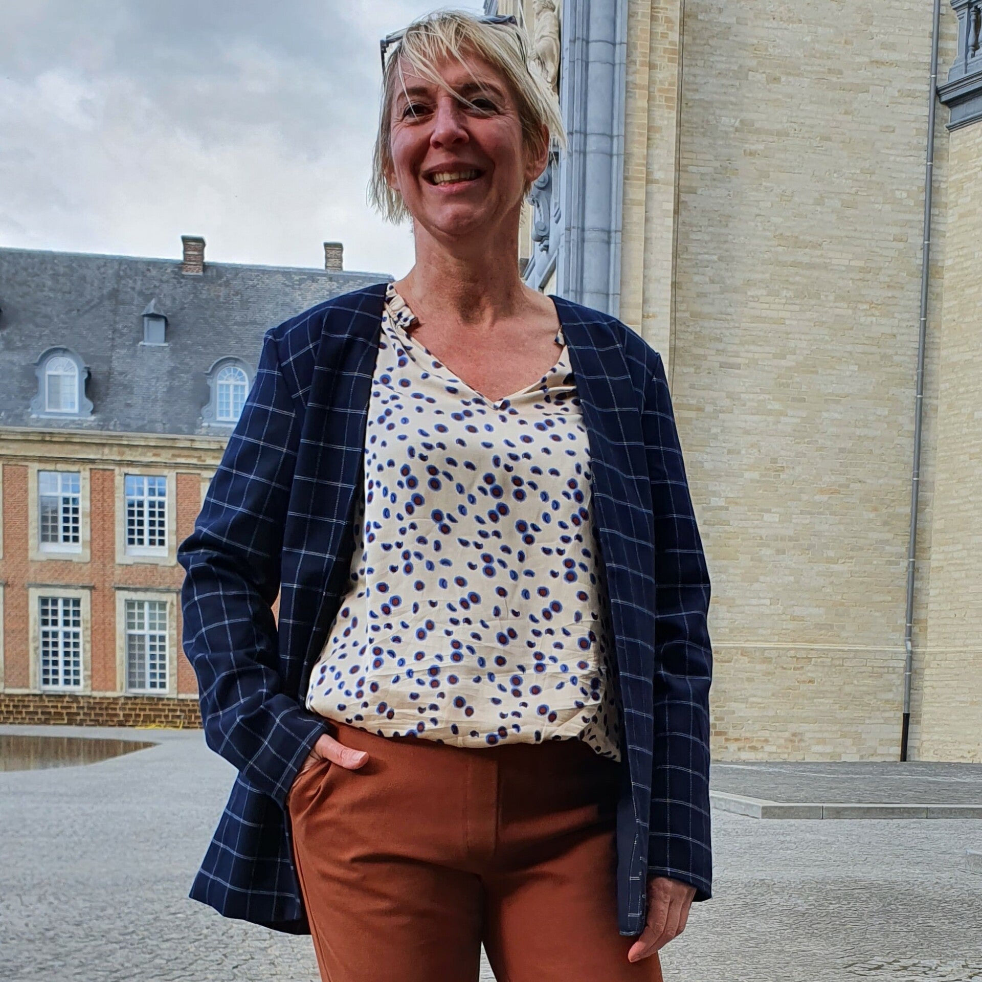 donkerblauwe geruite blazer