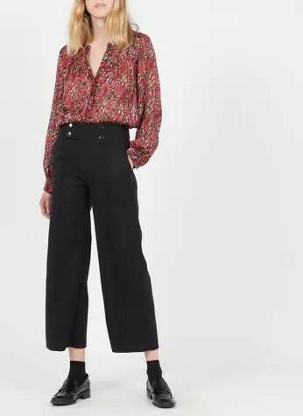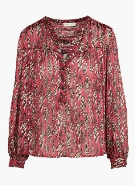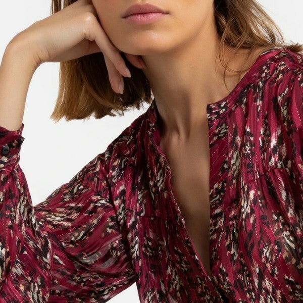 bordeauxrode blouse met lange mouwen en knoopsluiting