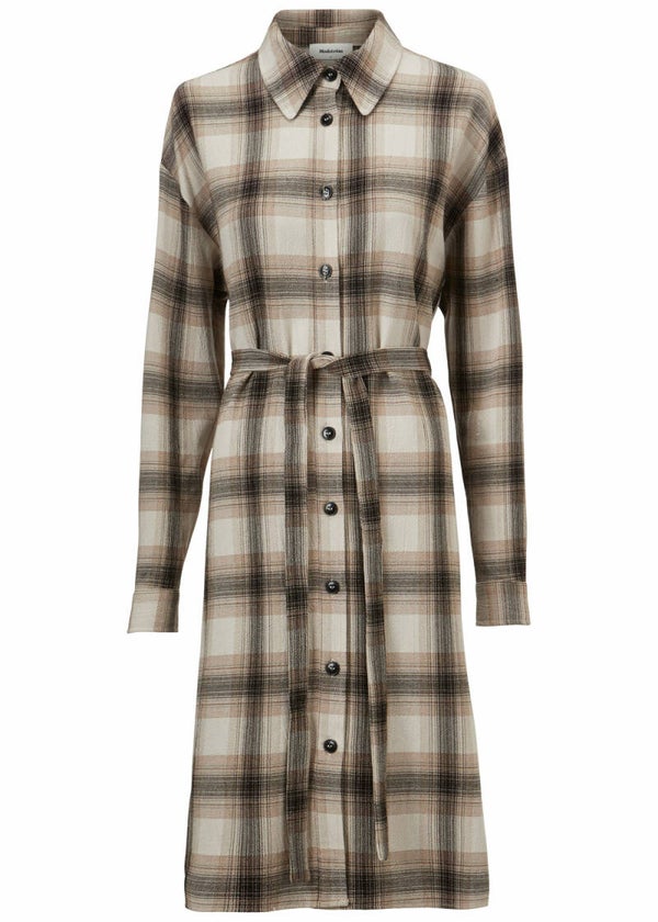Deze overhemdjurk heeft een geruit patroon en knoopsluiting aan de voorkant. De jurk heeft een ceintuur waarmee je je taille kunt benadrukken.