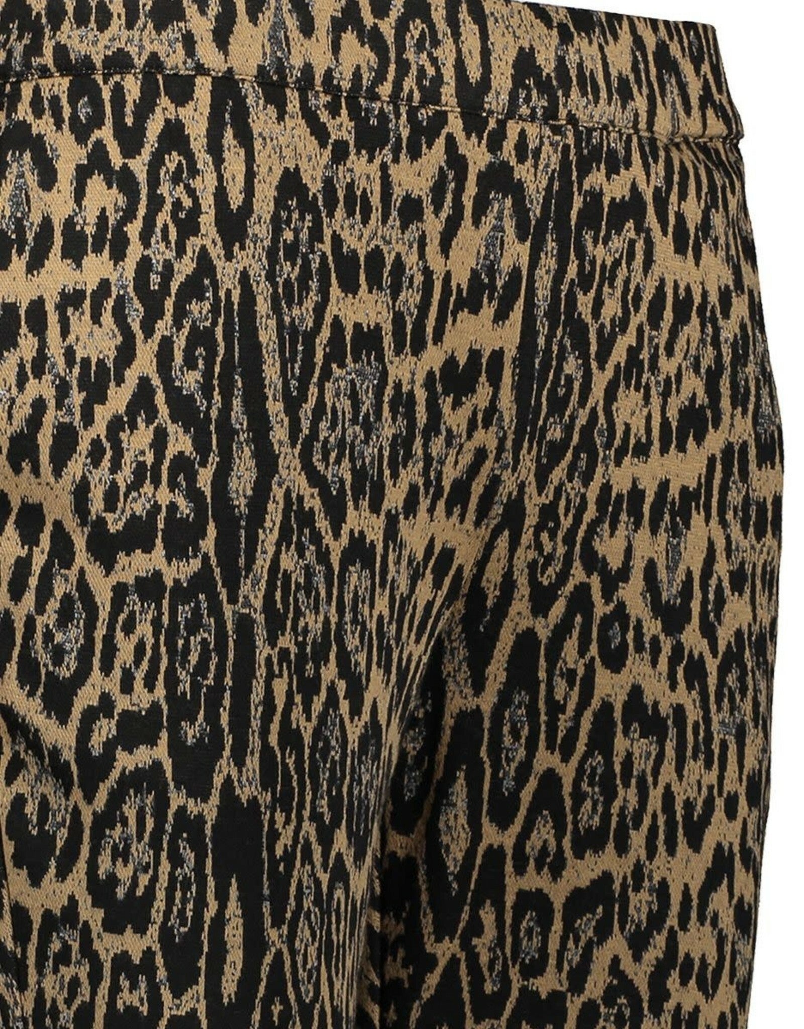 Stoere broek in luipaarddessin. De broek heeft een strakke pasvorm. Materiaal : 87% polyester, 12% rayon, 1% elastaan