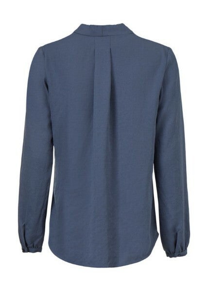 Deze elegante blauwe blouse heeft een sluiting met verborgen knoopjes en een v-hals