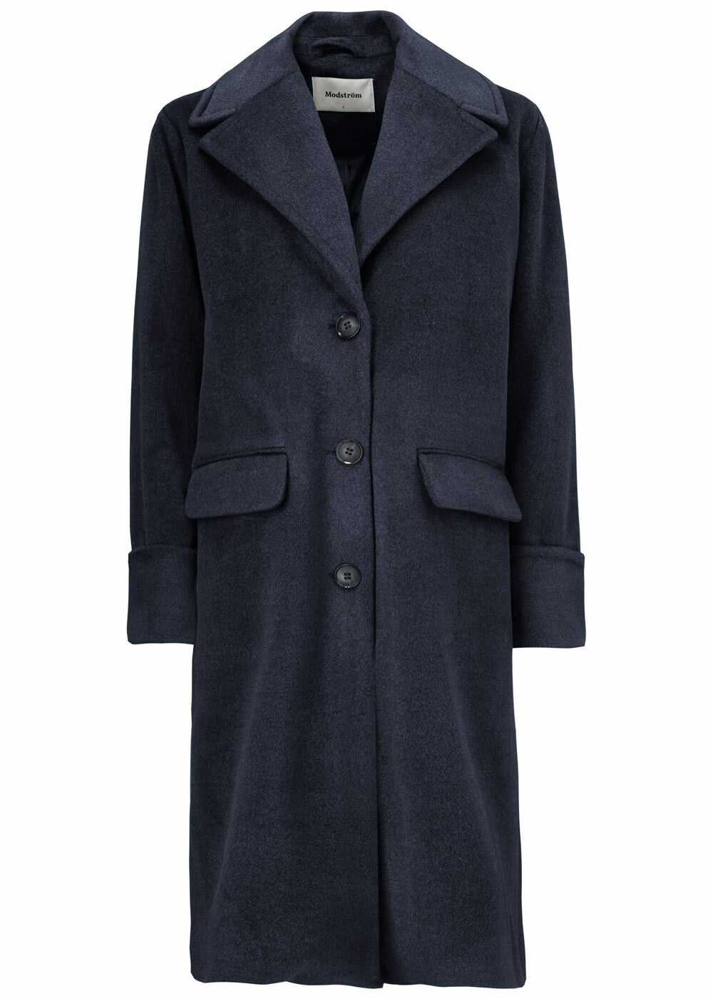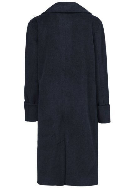 Stoere, lange jas met knoopsluiting voor en een grote kraag. Deze jas houdt je de hele herfst en winter warm.