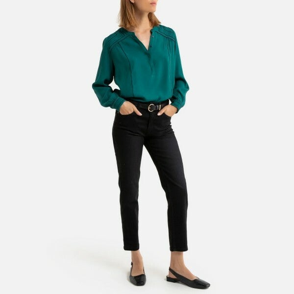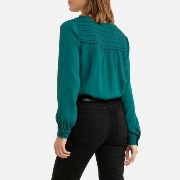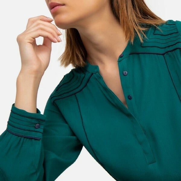 petrolkleurige blouse met lange mouwen