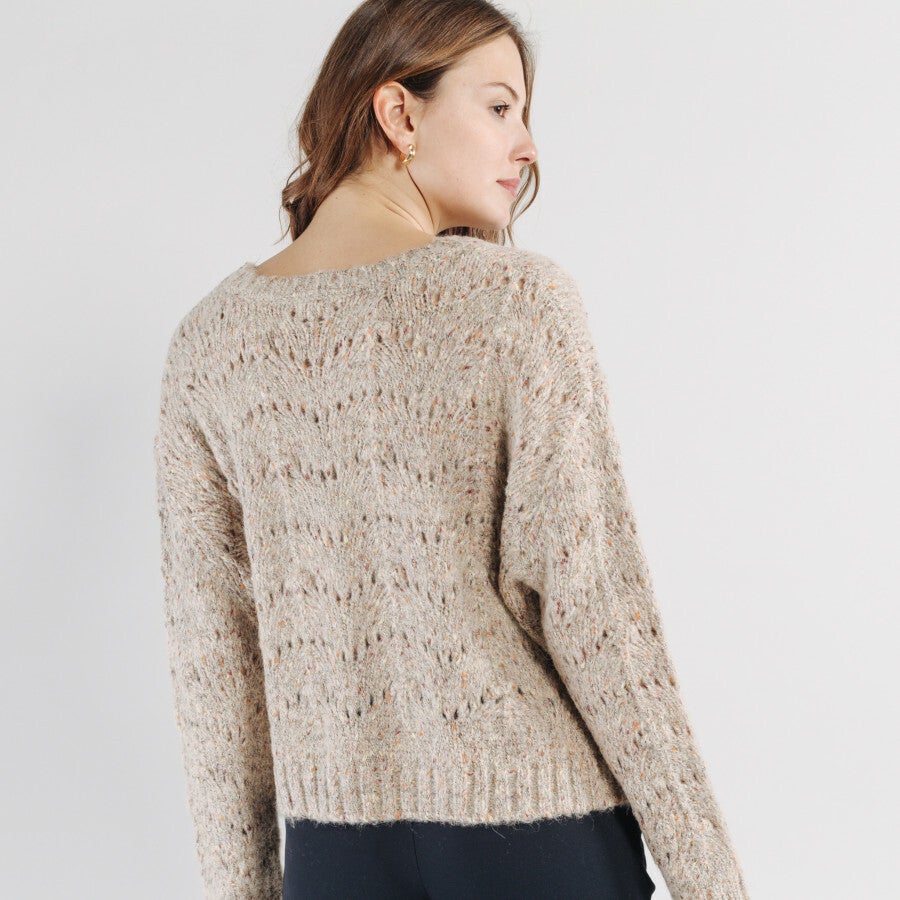 korte beige gespikkelde trui