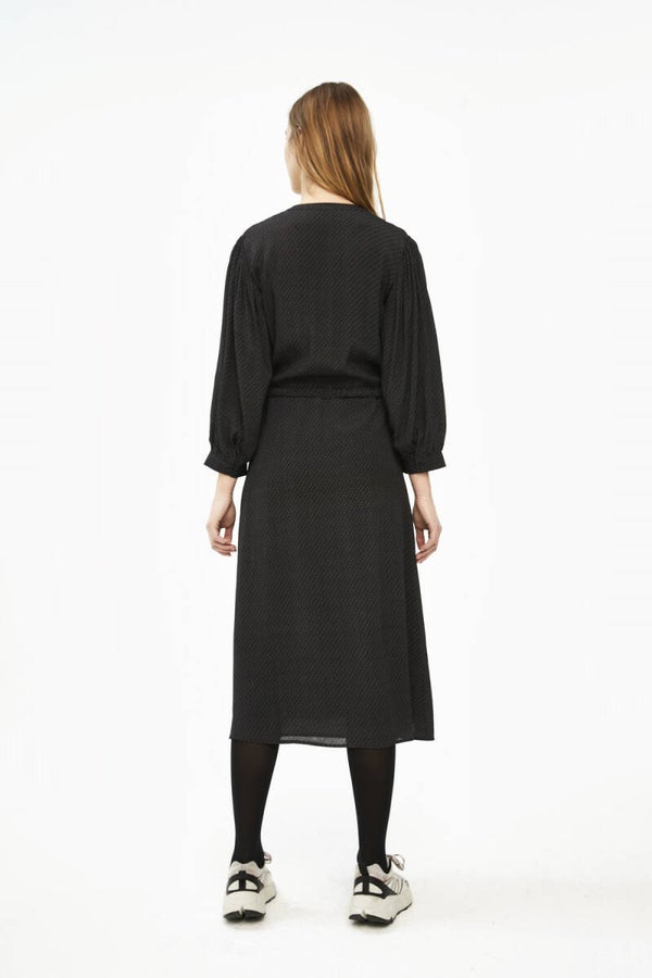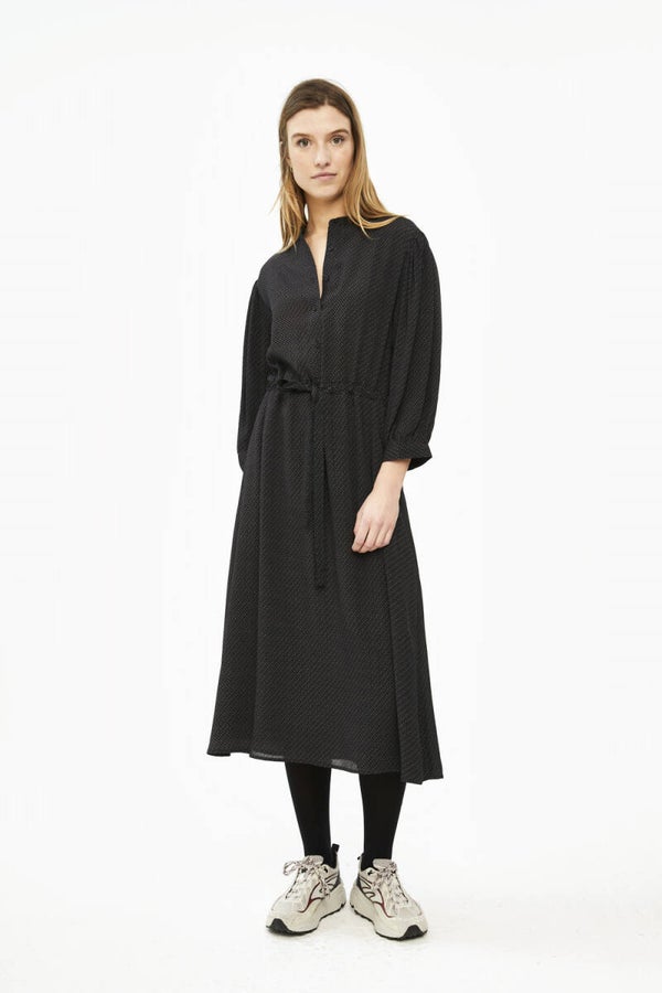 Deze mooie comfortabele jurk is gemaakt van een rijke viscosekwaliteit. De jurk heeft een ronde halslijn en driekwartmouwen. Hij heeft een verborgen ceintuur die je aan de voorzijde kunt strikken. Dit zorgt voor een extra vrouwelijke touch. De jurk is voorzien van een onderjurk.