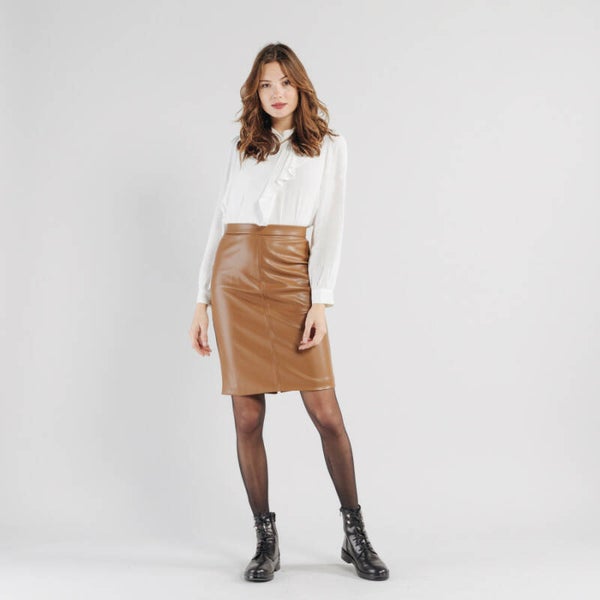 Deze midi-kokerrok geeft een nauwsluitend effect voor een moderne vrouwelijke look. Let op de split aan de achterkant, die de vrouwelijkheid van het kledingstuk benadrukt. Kunstleer. • Kokerrok. • Zachte stof. • Ritssluiting. Samenstelling: 60% polyurethaan, 40% polyester.