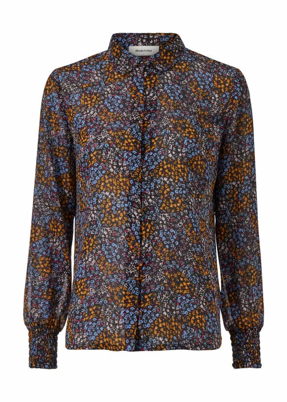 Mooi en elegant overhemd in bloemenprint. Het overhemd met vlammenprint heeft brede gesmokte manchetten aan de mouwen, wat elegantie toevoegt aan het klassieke ontwerp. Het shirt is gemaakt van gerecycled polyester. 100% gerecycled polyester