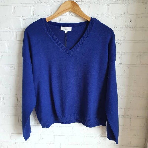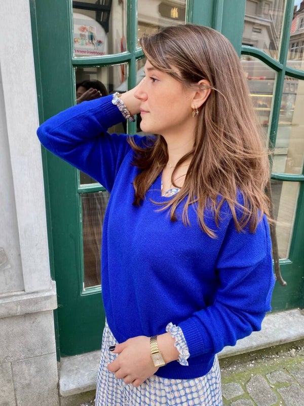 Deze mooie cobalt-blauwe trui met V-hals is superzacht en een ideaal basisstuk voor je garderobe. Combineert mooi bij broek of rok.
