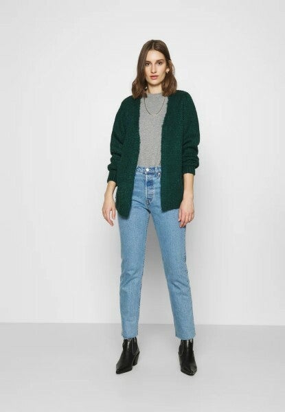 Leuke cardigan met een stoere uitstraling en zonder knopen. Perfect voor de koude dagen en kan over een t-shirt worden gedragen of als contrast met een vrouwelijke jurk. 80% acryl, 20% polyester