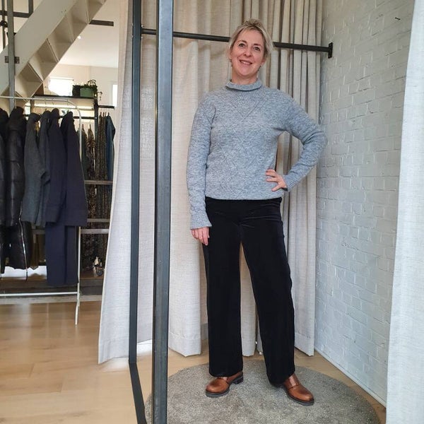 Prachtige rechte zwarte fluwelen broek. Voelt als homewaer