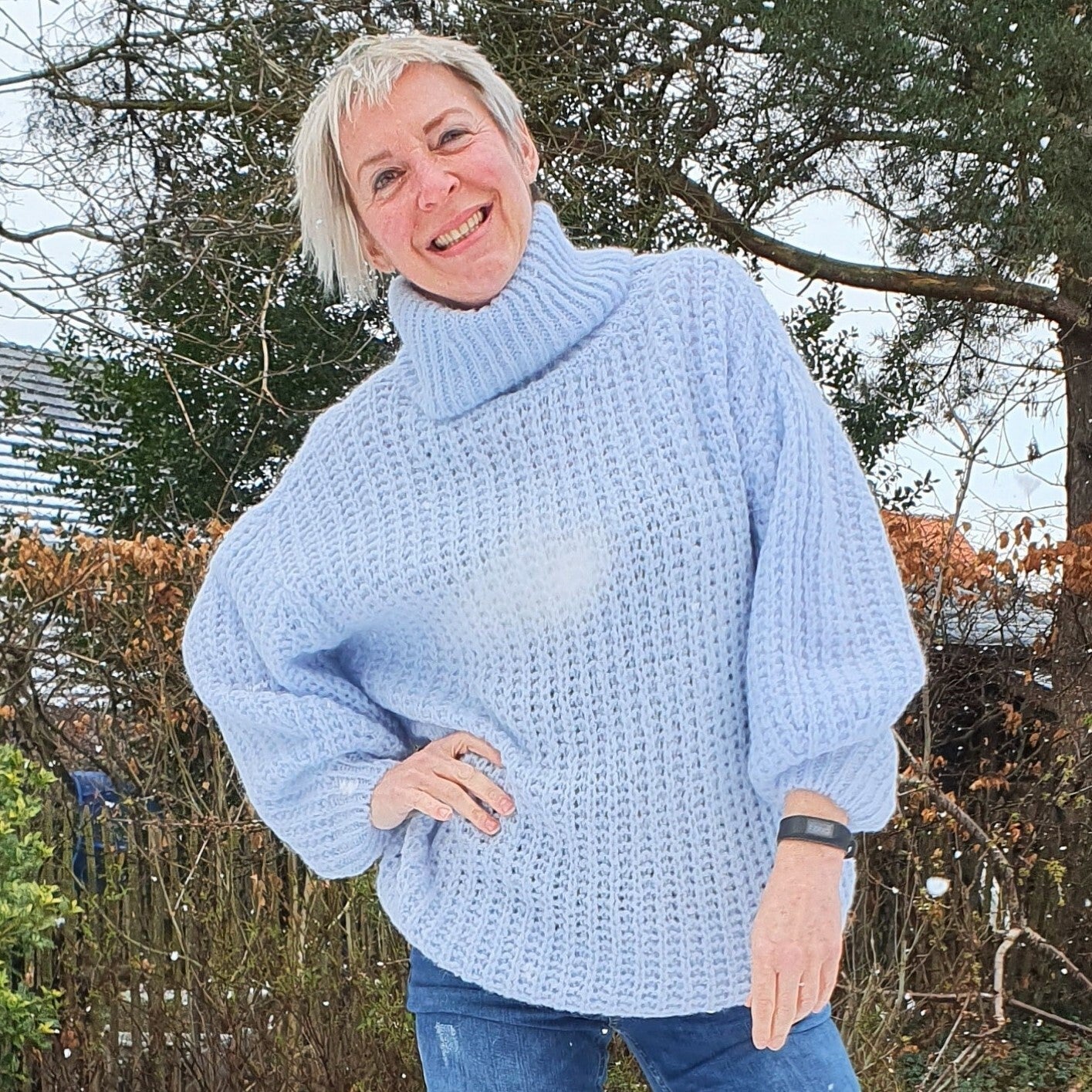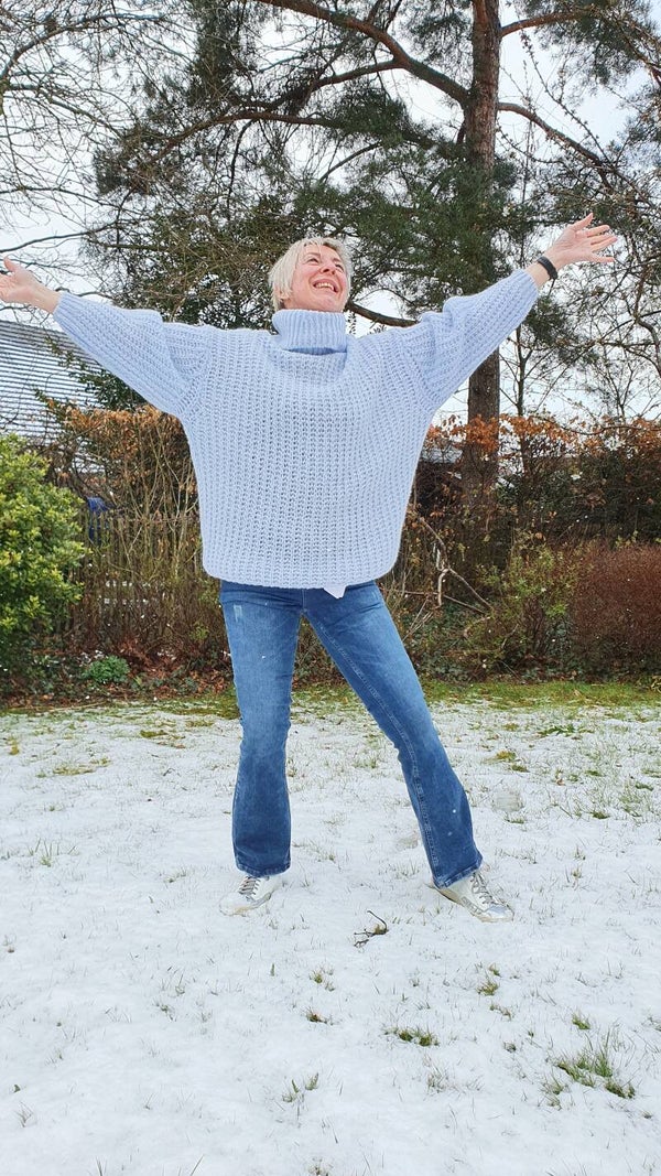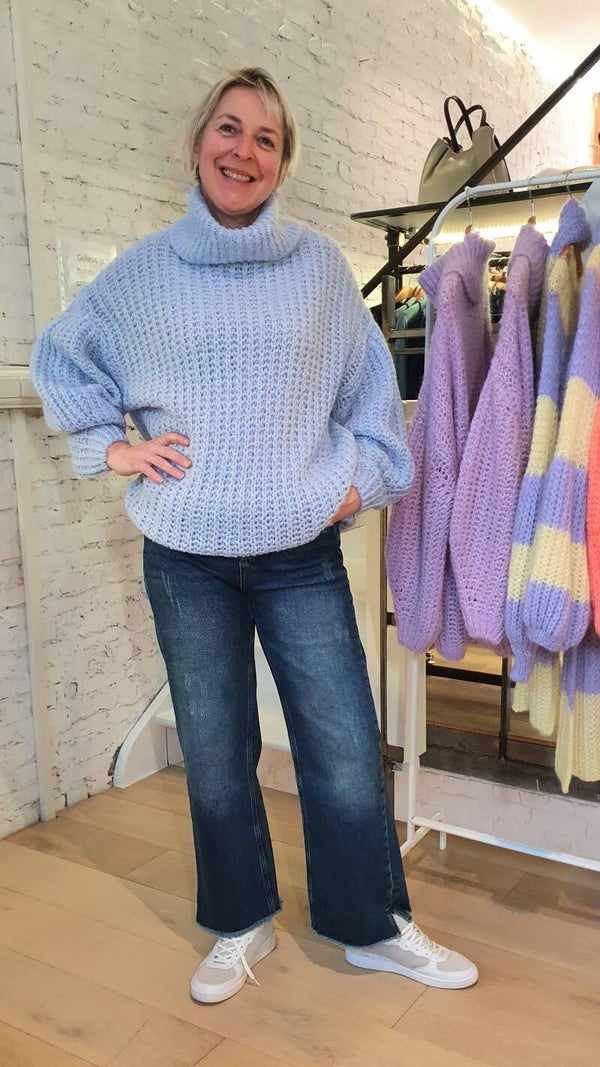 Oversized pastelblauwe trui met losse rolkraag