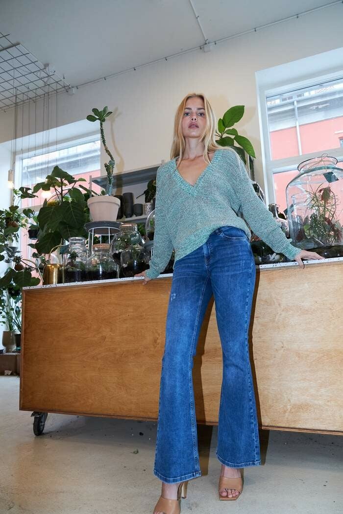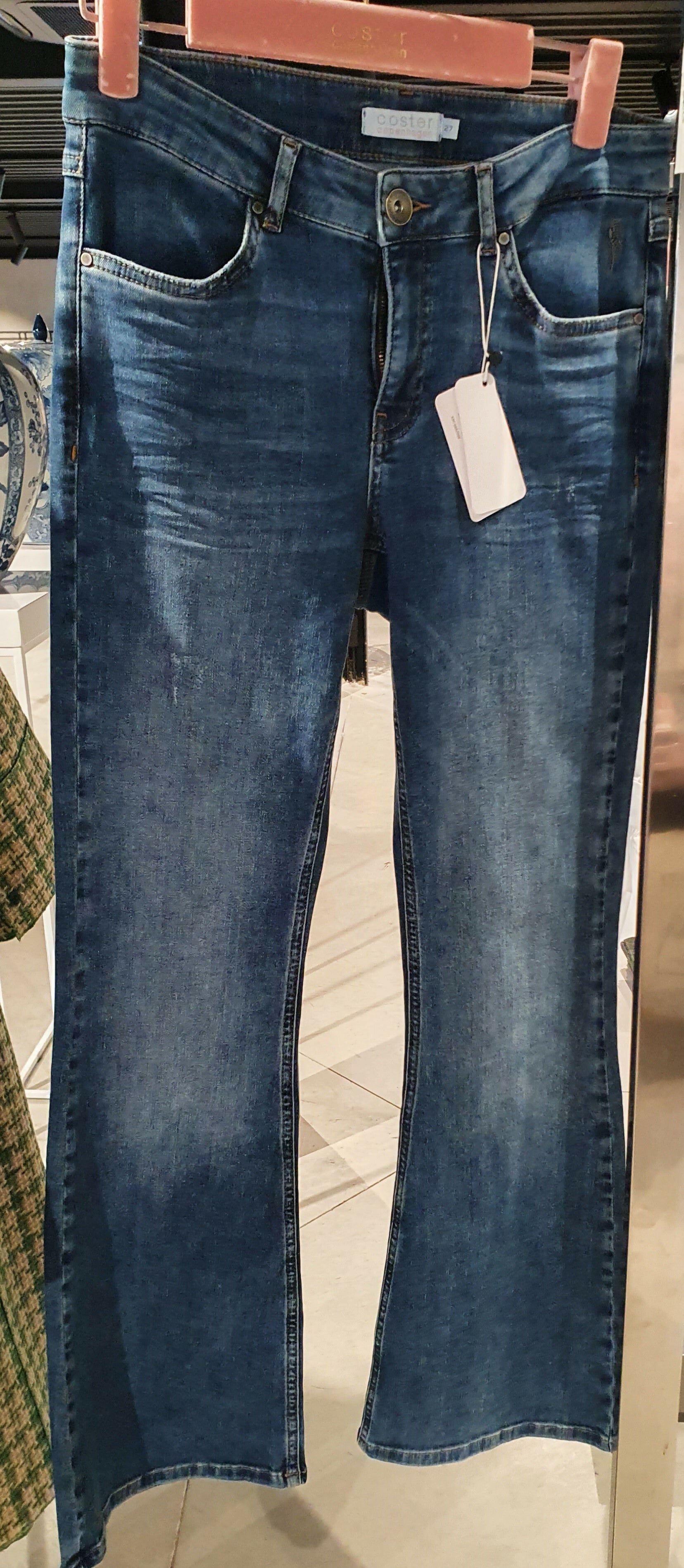 Jeans met laarsslee in katoen en EA kwaliteit. De jeans is voorzien van een knoop sluiting en zakken.