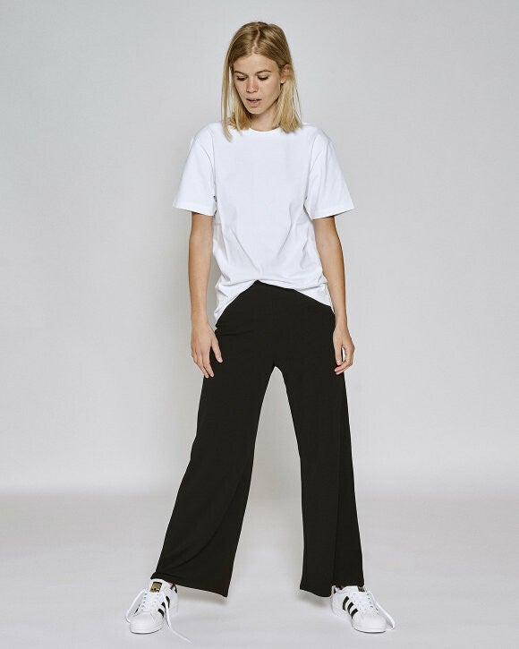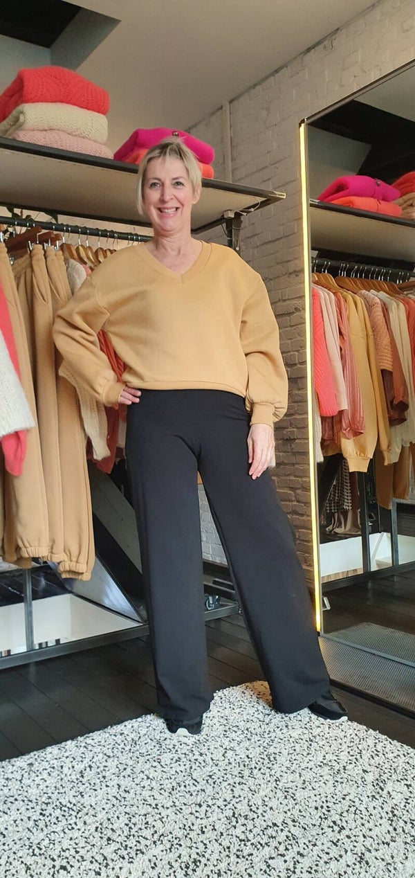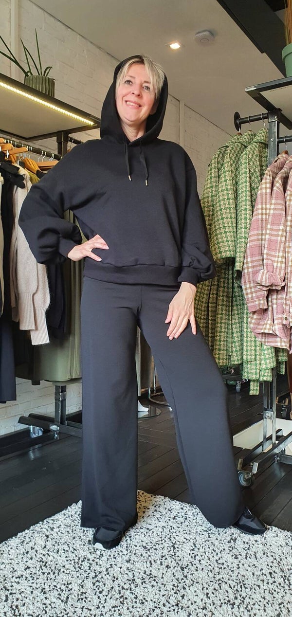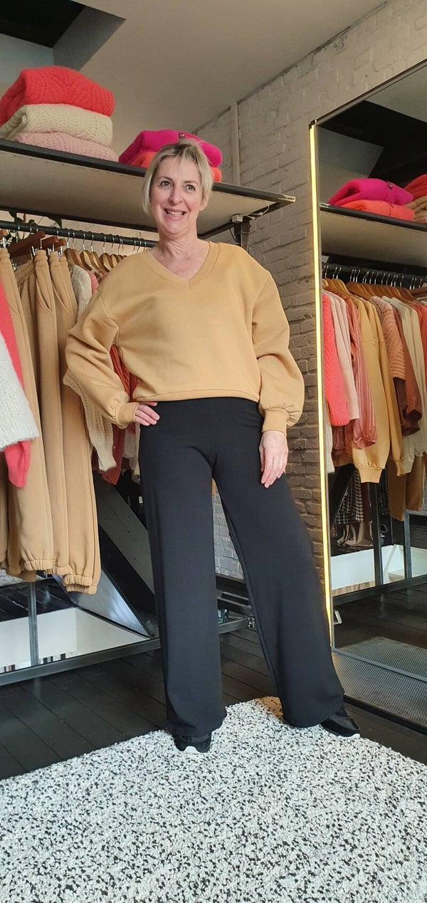 Deze zwarte broek in stretchstof is heerlijk om te dragen. Kan zowel casual als gekleed