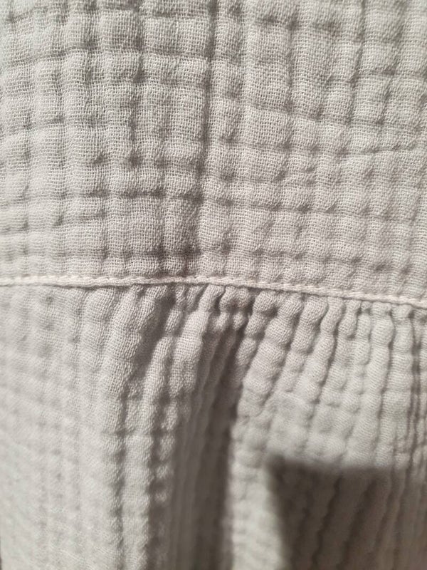 De doppia blouse is gemaakt van een zachte katoenkwaliteit. De blouse heeft een rond halslijn met lange mouwen en is voorzien van een knoopsluiting op zowel de voorkant als op de mouwen. Dit geeft een mooi blousend effect bij de mouwen. De wafelstructuur van het materiaal geeft de blouse een rijke uitstraling.
