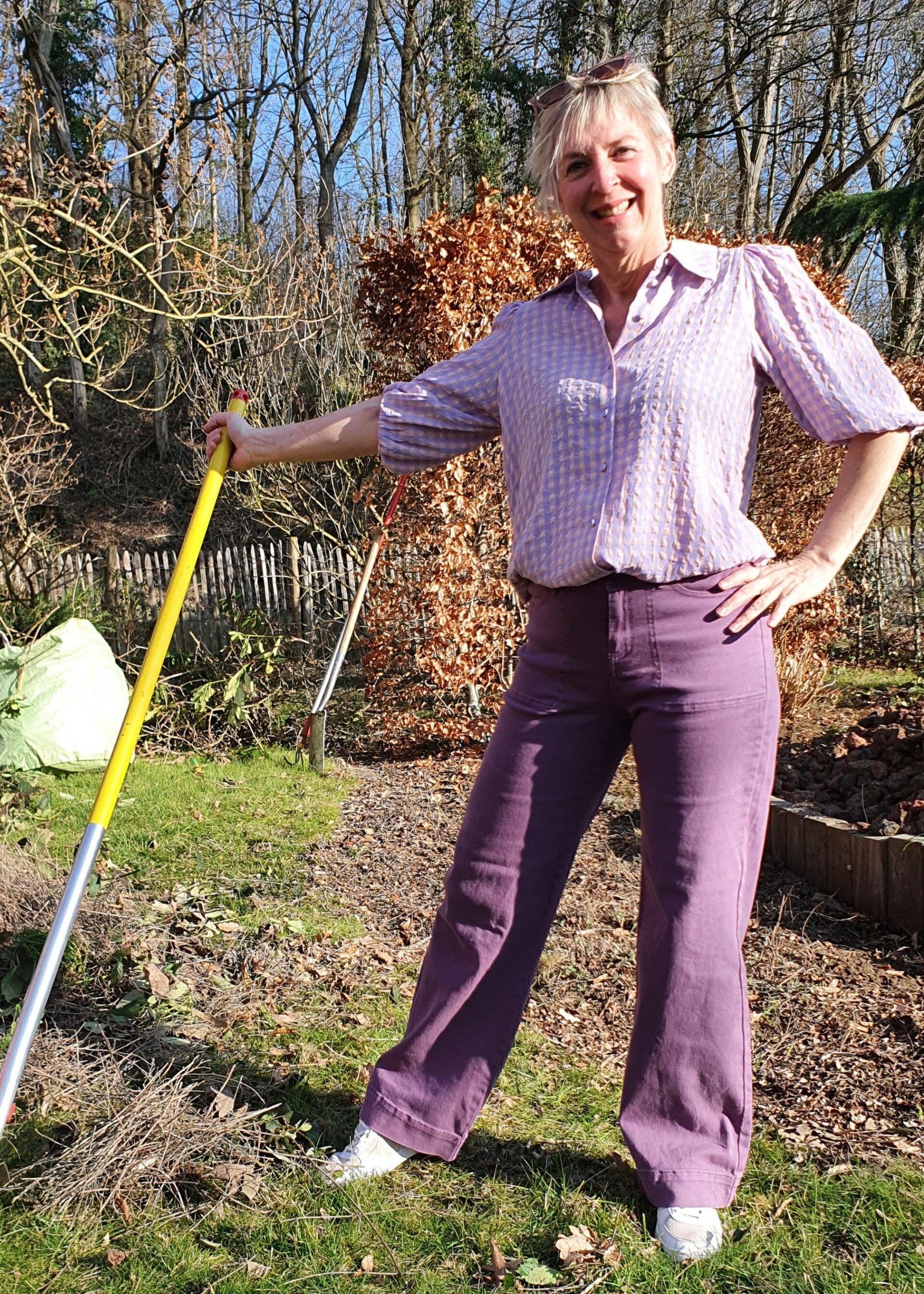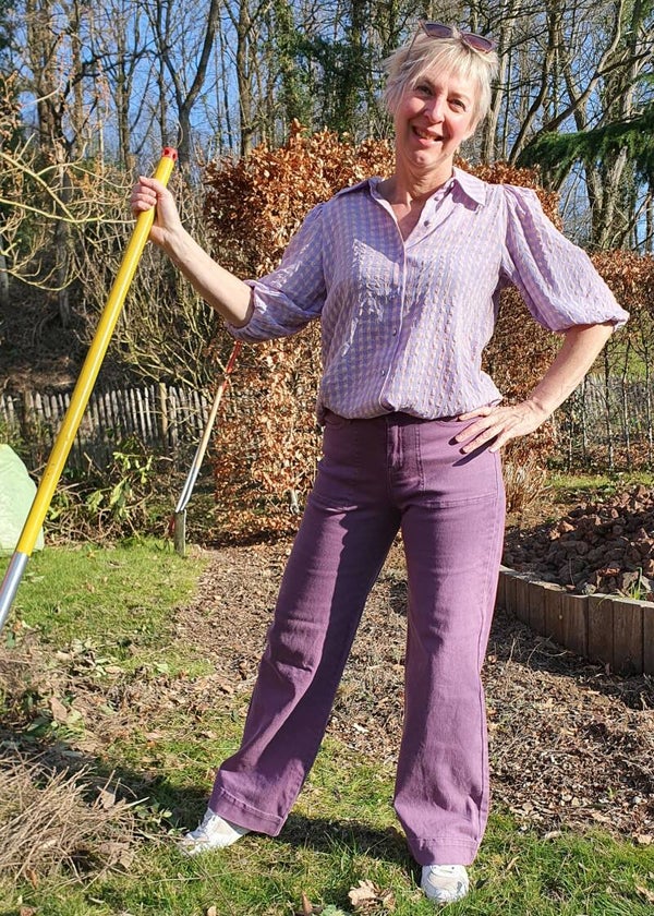 Deze trendy lila ruitjesblouse heeft halflange mouwen met een elastiek en een mooi kraagje. Samenstelling : 80% katoen, 20% polyester