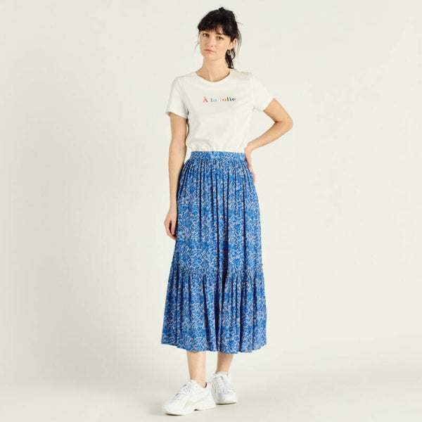 Lange rok met bloemenprint en hoge taille. Tailleert klein Samenstelling: 100% VISCOSE. Onderhoud: Maximale wasbeurt op 30 ° C.