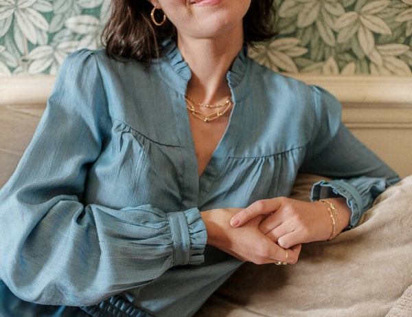 - Blouse met lange mouwen - Ronde halslijn - Naad boven de borst - Geplooide kraag en manchetten - 100% Tencel