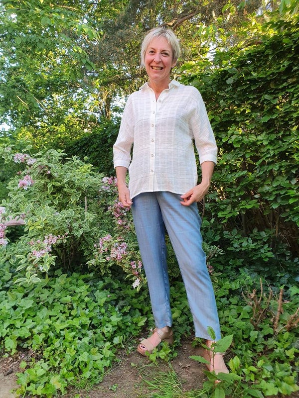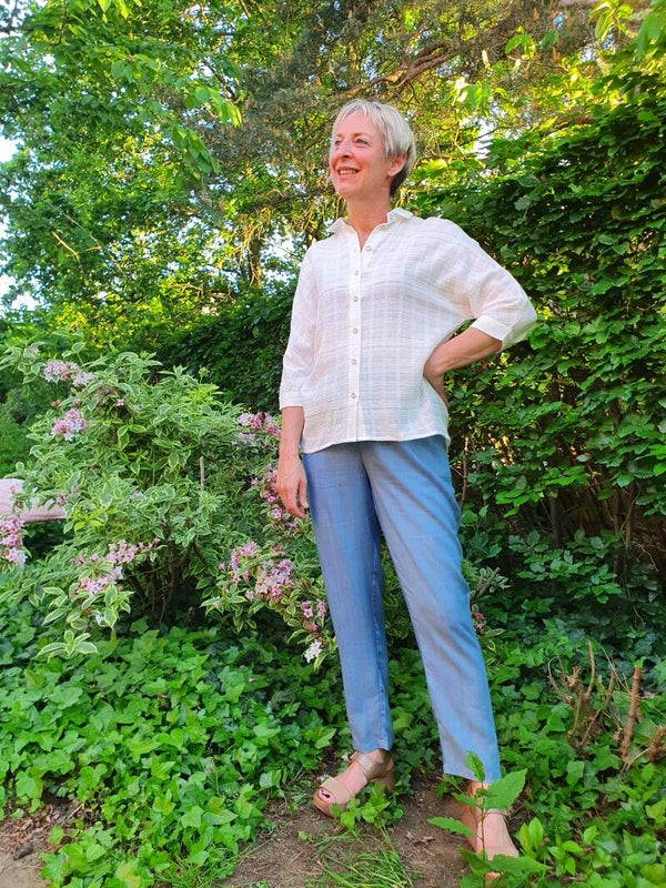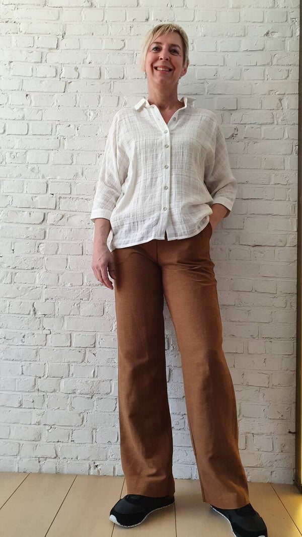 dit cremekleurige hemd heeft 3/4 mouwen en een zeer mooie textuur