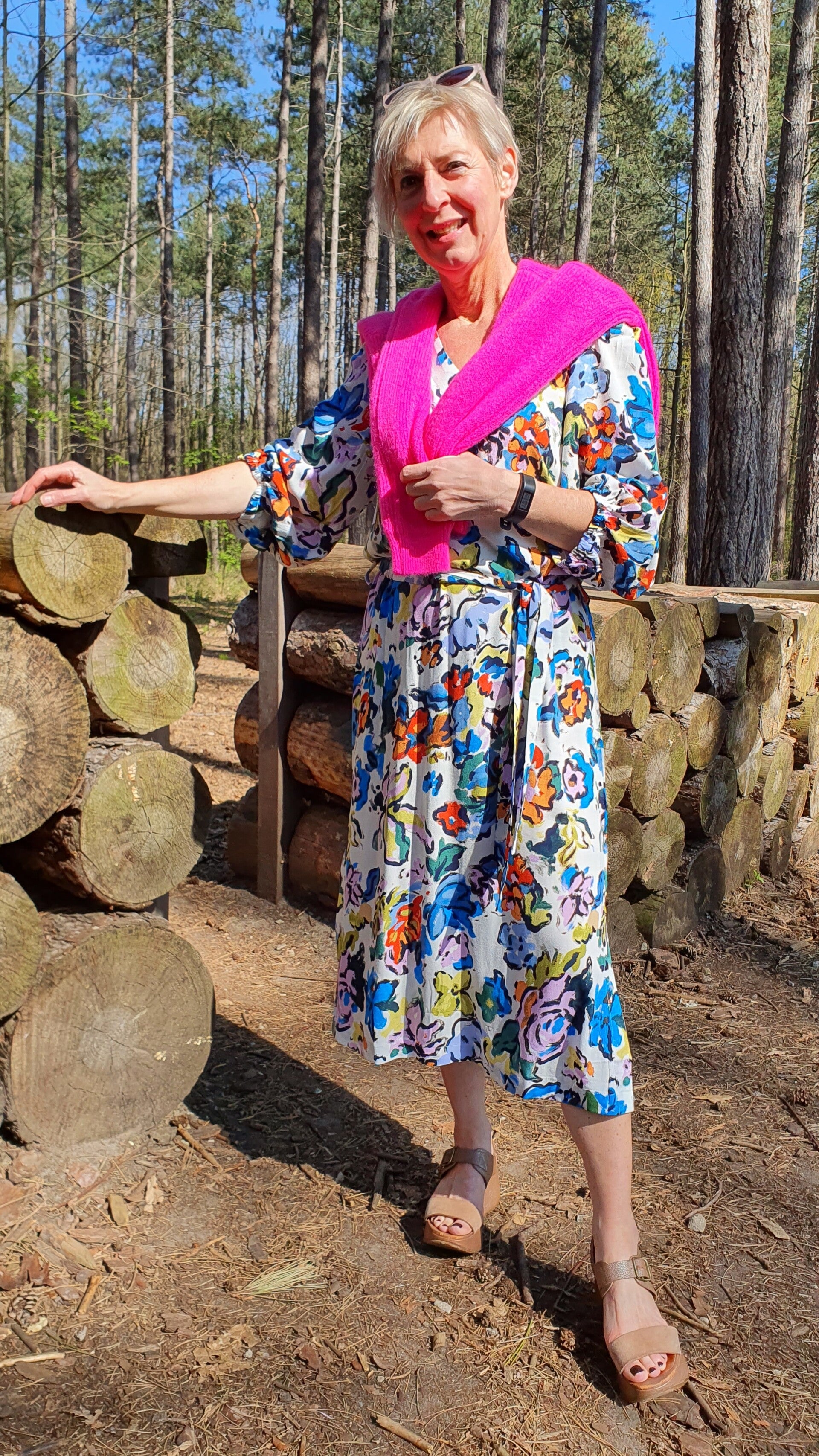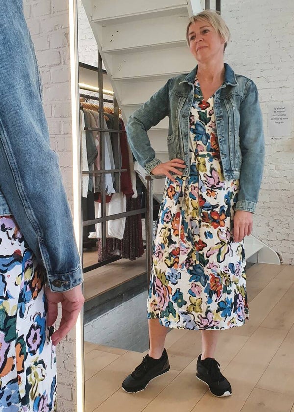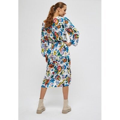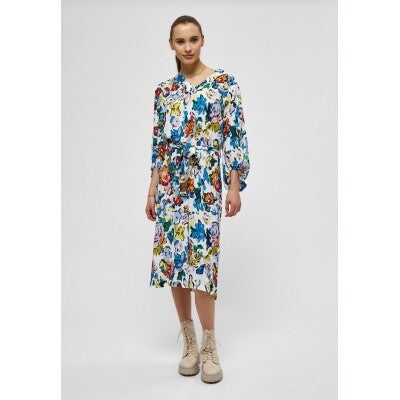 Mooie kleurrijke jurk. De jurk heeft de mooiste bloemenprint. Het heeft een lint in de taille en een v-hals. De jurk heeft 3/4 mouwen.Kwaliteit: 100% viscose