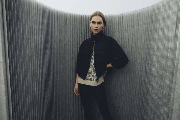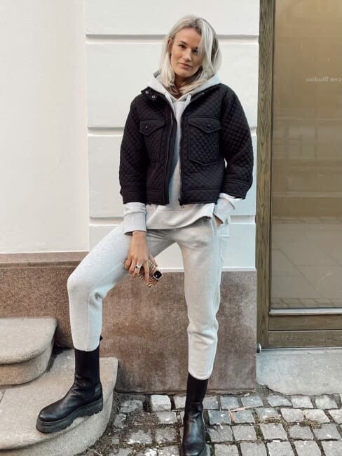 Stoer jasje met wafelpatroon en 3/4 mouwen met halfhoge kraag met twee drukknopen en een grove zwarte ritssluiting. Het vestje heeft twee grote borstzakken met kleppen en drukknopen.