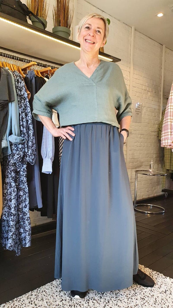 De liva linen blouse is vervaardigd van een rijke linnen kwaliteit wat zorgt voor een classy en femine uitstraling. De loose-fit blouse heeft een v-halslijn en een driekwart mouw. De achterkant van de blouse valt langer dan de voorkant en is voorzien van mooie smalle boorden die in een ronding lopen, wat zorgt voor een speelse look.