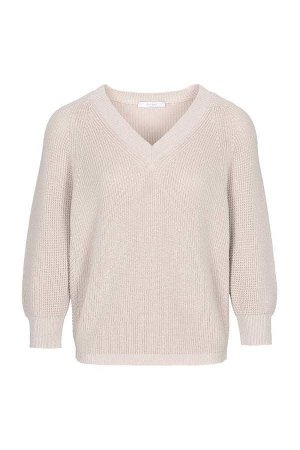 De june pullover is gemaakt van een super zachte katoen kwaliteit. Deze trui heeft een mooie v-halslijn die zorgt voor een feminine uitstraling. Dat in combinatie met de vlindermouw zorgt ervoor dat deze katoenen trui een alltime favorite is. De trui heeft een driekwart mouw en de verschillende manieren van breien geeft deze trui een unieke uitstraling.
