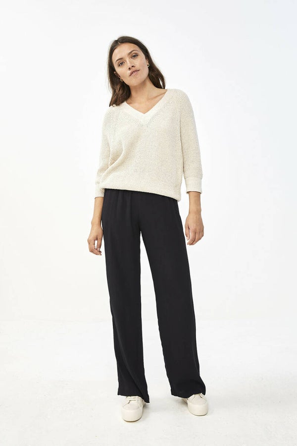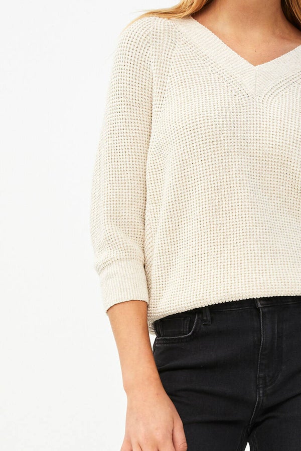 superzachte ecru trui met v-hals