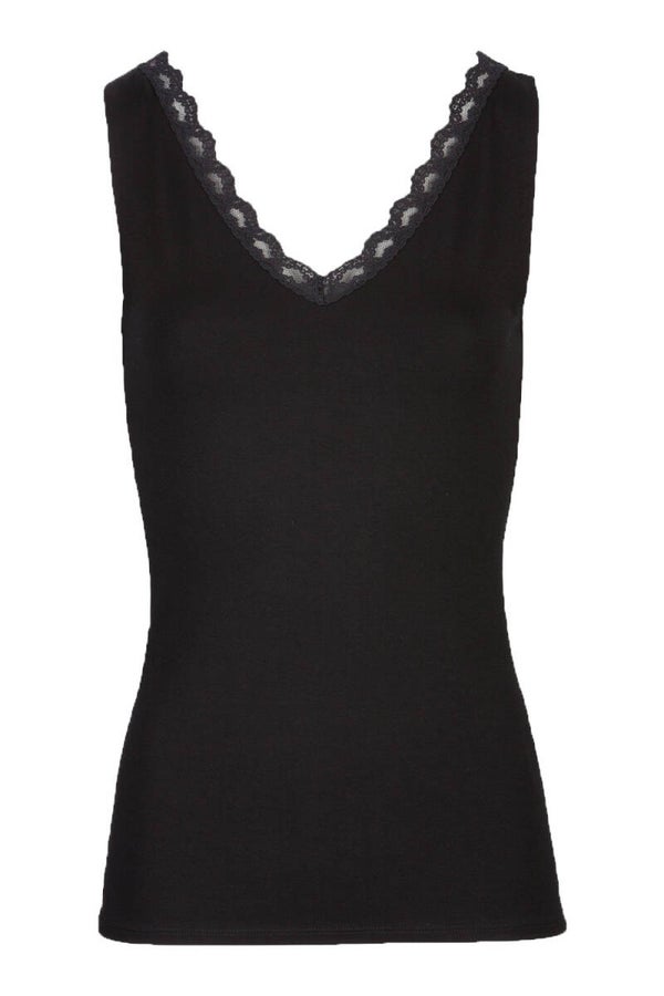 Het lace singlet is vervaardigd uit een stretchy viscosekwaliteit, voor een optimale pasvorm. Het prachtige basishemdje is voorzien van een vrouwelijke V-halslijn, voorzien van kant. Dit hemdje is een echte essential, je kunt het overal onder dragen! Daarnaast heeft het singlet dunne schouderbandjes.