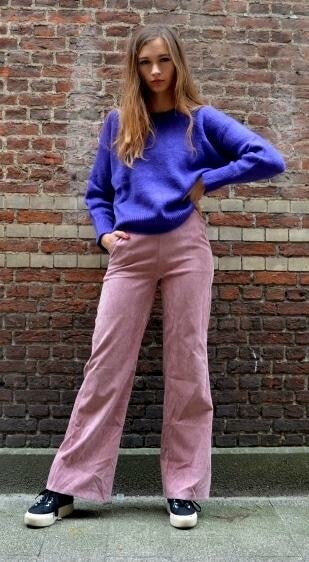 Deze broek draagt als homewear. De broek heeft brede pijpen en een rits aan de zijkant