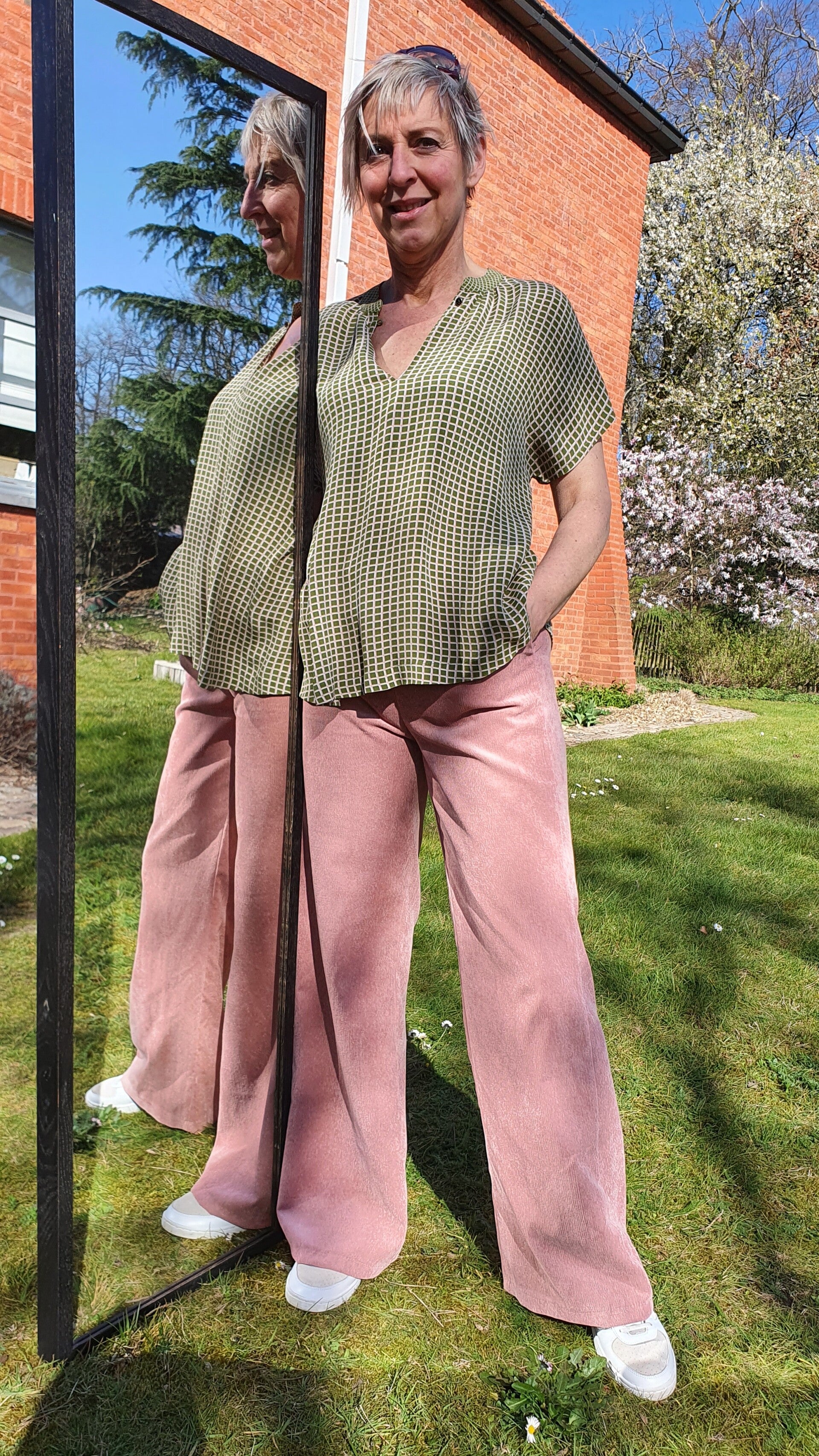 oudroze broek met brede pijpen