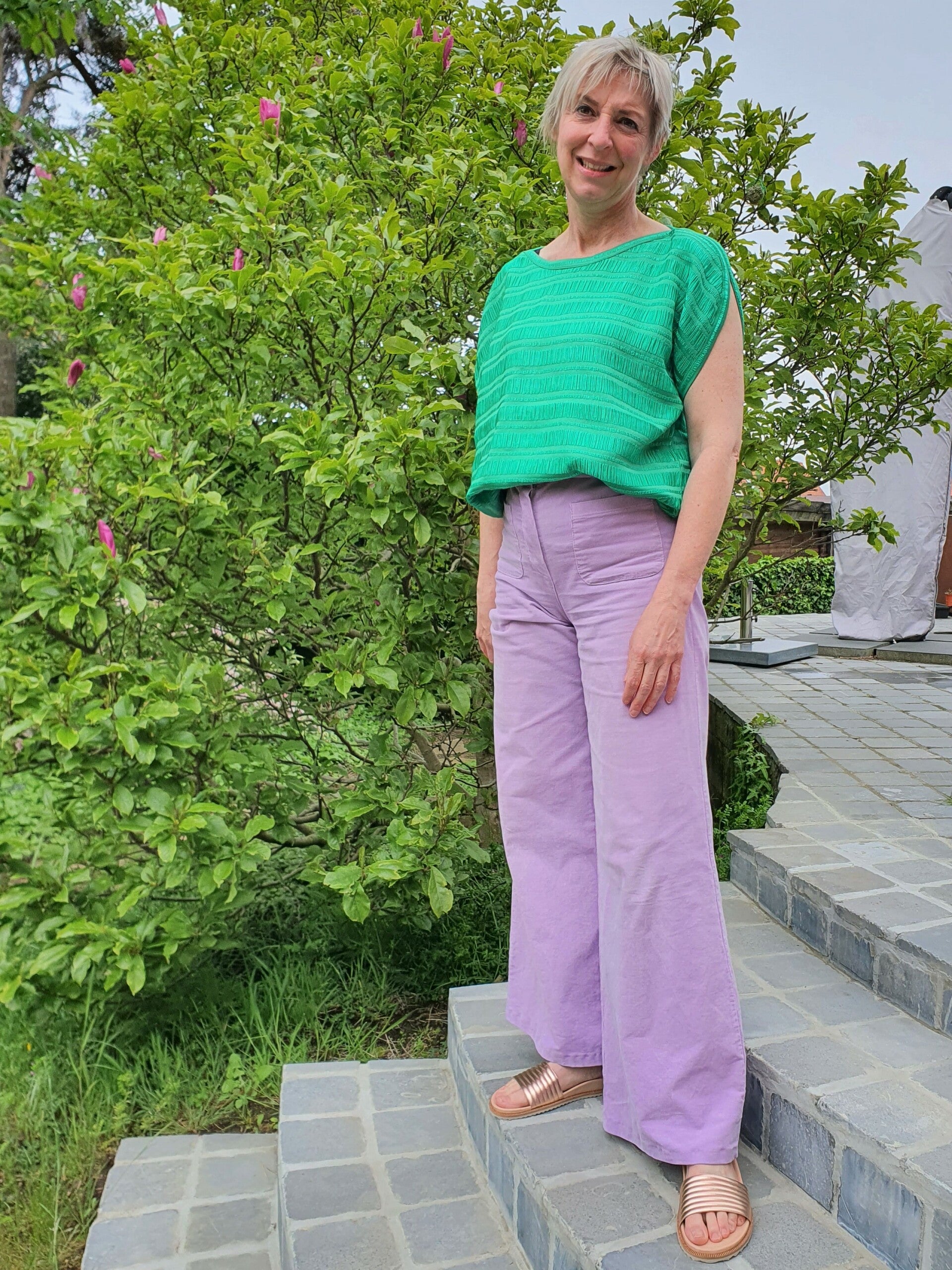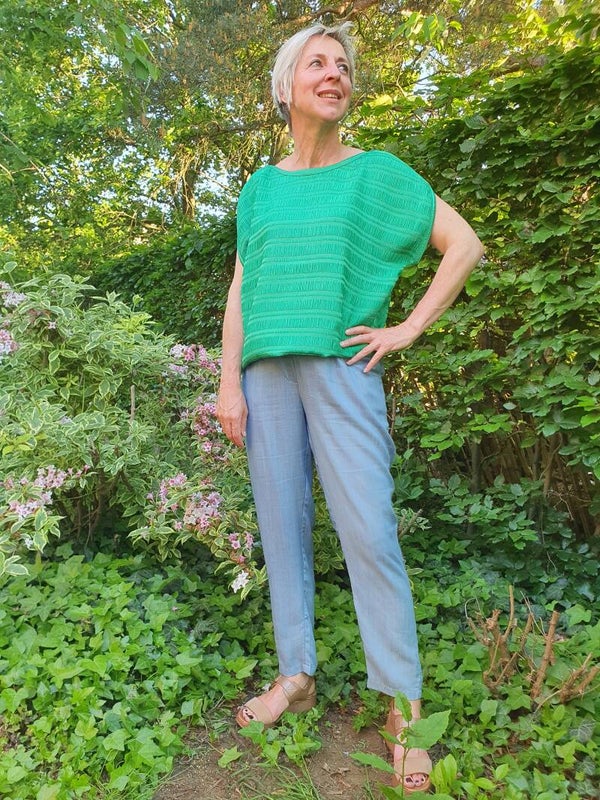 Groene losse top met ronde hals.