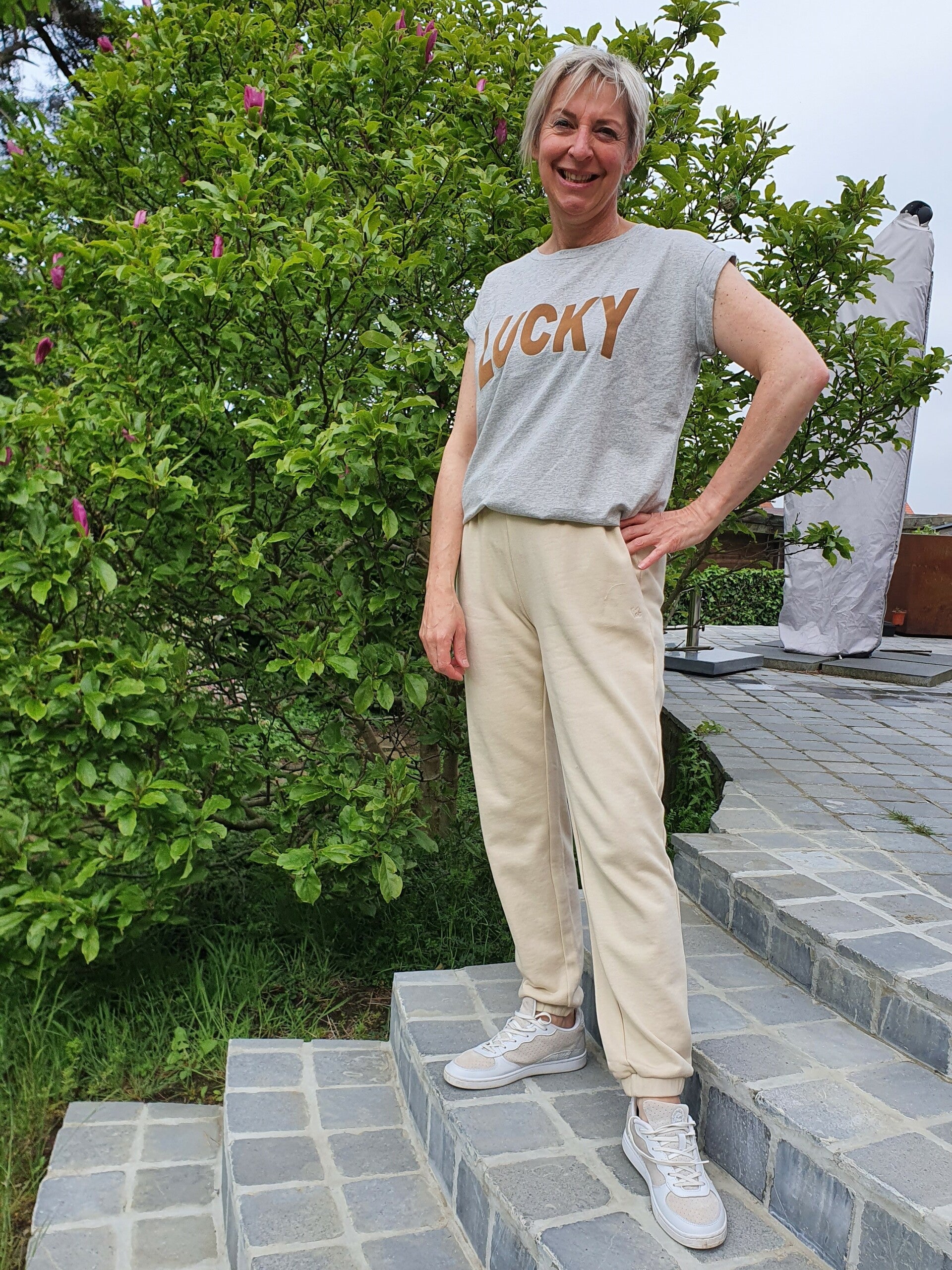 Deze mooie top is vervaardigd uit een zachte organic katoen kwaliteit, wat zorgt voor een optimaal draagcomfort. De top is voorzien van een ronde hals, een korte mouw en is voorzien van een flocked print, met de tekst 'lucky'.