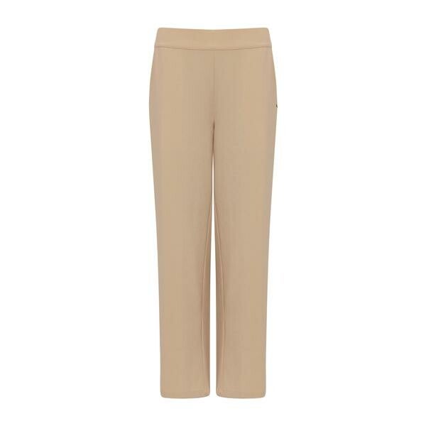 comfortabele beige broek heeft een elastiek in de rug en wijde pijpen. Samenstelling : Polyester 95%, Elasthan 5%