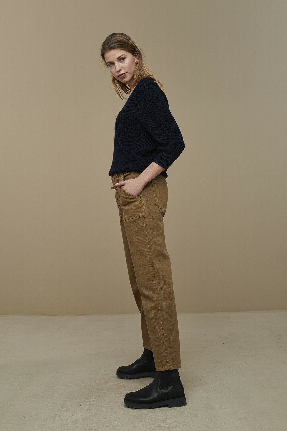 Deze superzachte trui is gemaakt van een zachte katoen kwaliteit. Hij heeft een mooie v-halslijn die zorgt voor een vrouwelijke uitstraling. Dat in combinatie met de vlindermouw zorgt ervoor dat deze katoenen trui een alltime favorite is. De trui heeft een driekwart mouw en de verschillende manieren van breien geeft deze trui een unieke uitstraling.