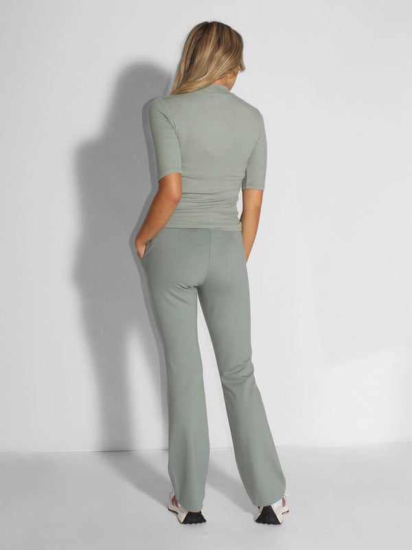 Leuke broek met wijd uitlopende pijpen en voorzakken. Het rekbare materiaal en de elastische taille zorgen voor de perfecte pasvorm.