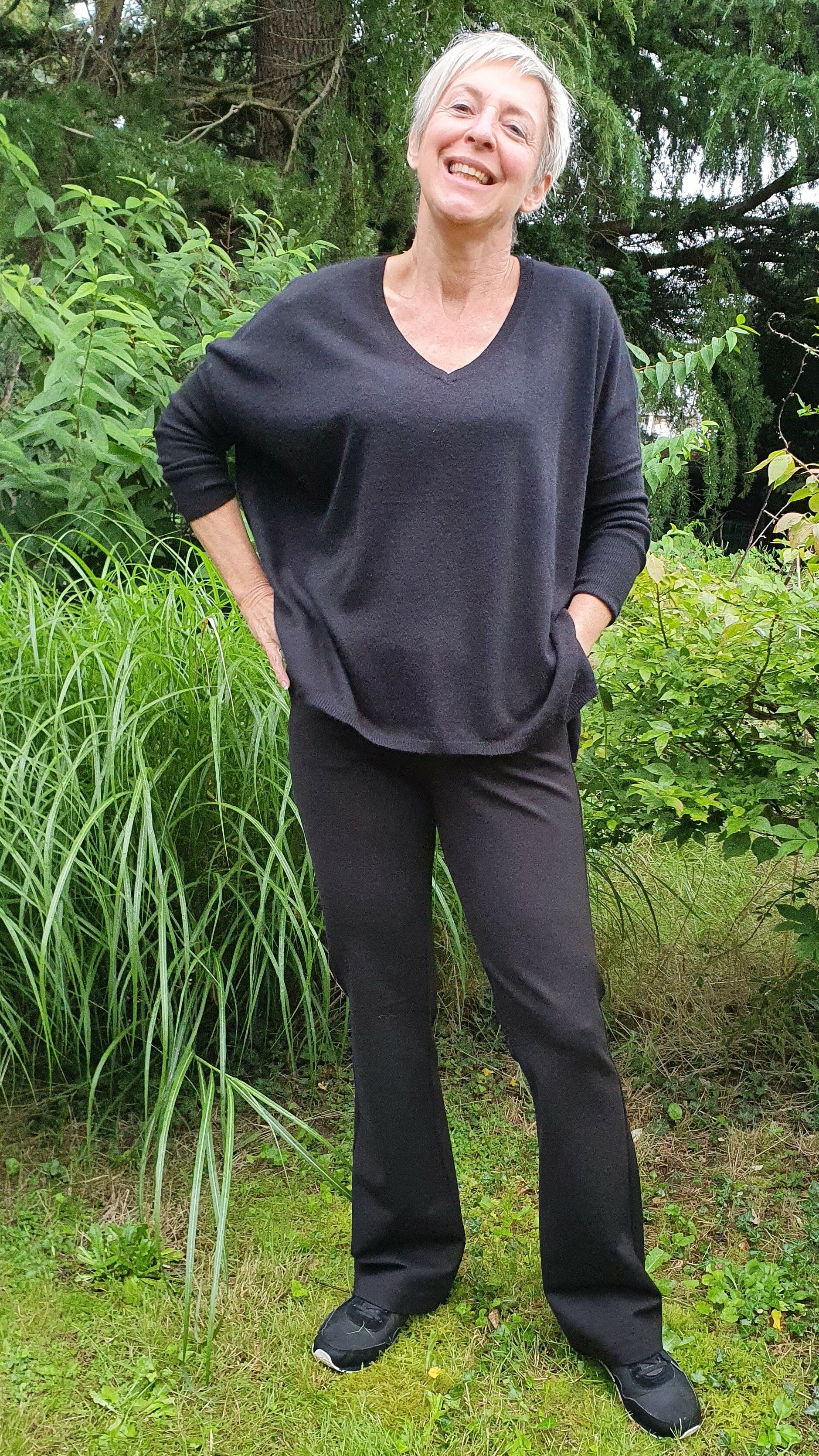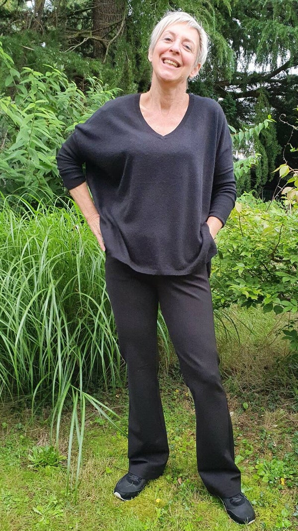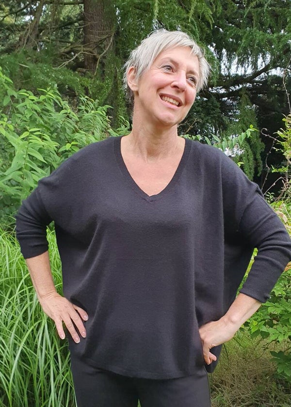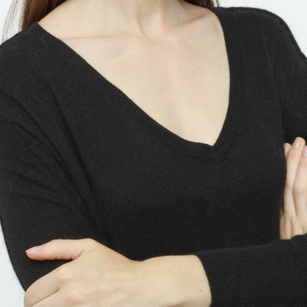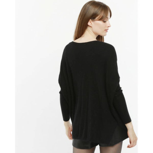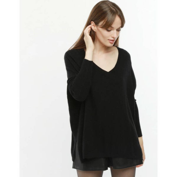 Superzachte oversized trui met lange mouwen en v-hals. aan de zijkanten heeft de trui splitten.