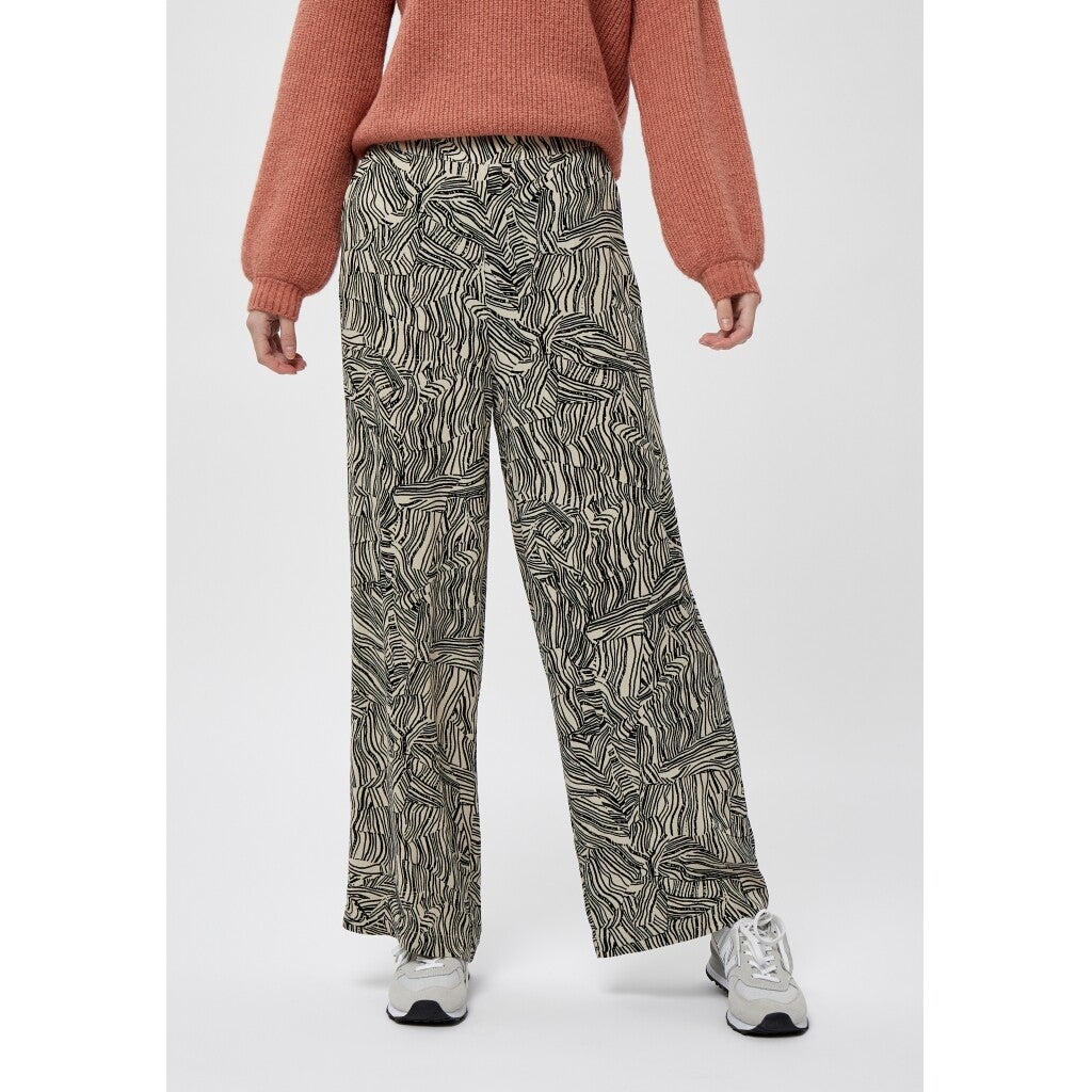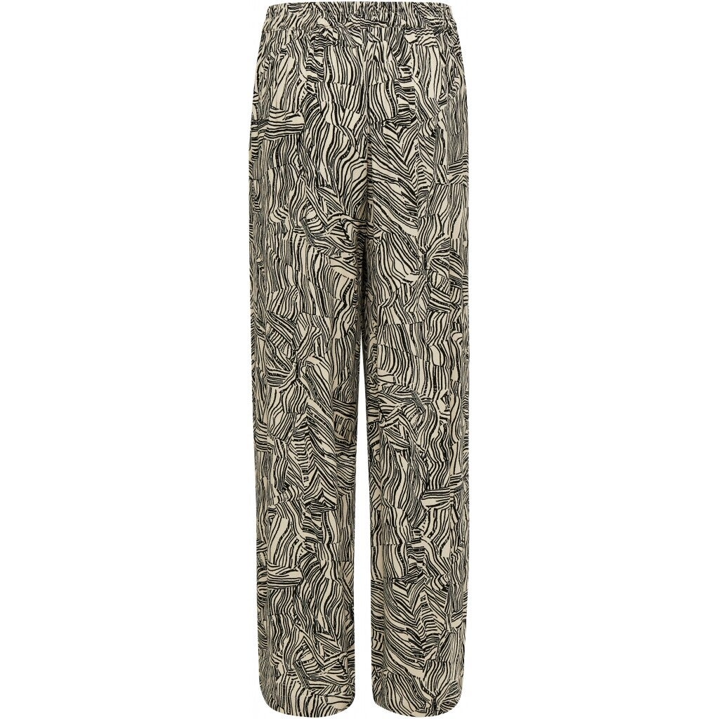 coole comfortabele broek in een leuke zwartwit-print. De broek broek heeft rechte pijpen en is suoet zacht. Leuk om te stylen met een leuke cardign of trui, maar ook tof met een losse t-shirt