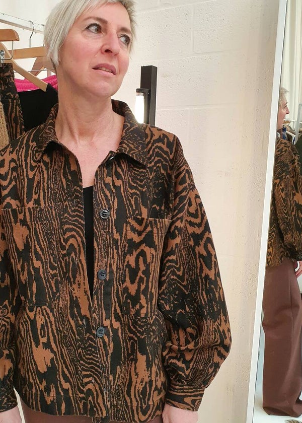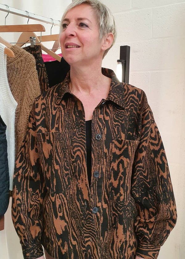 bruin/zwart oversized hemd/vest met grafische print (laatste stuk)