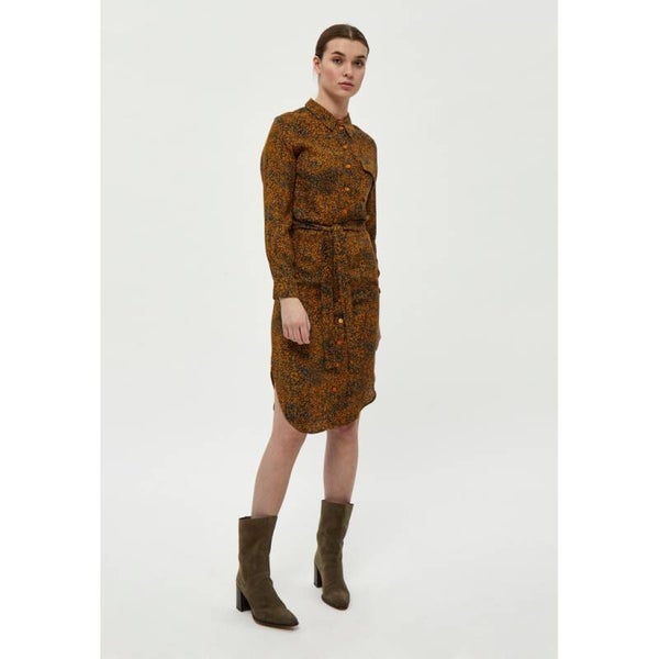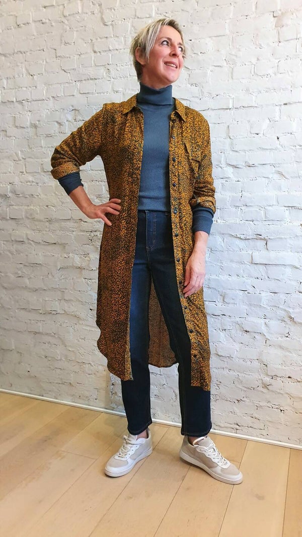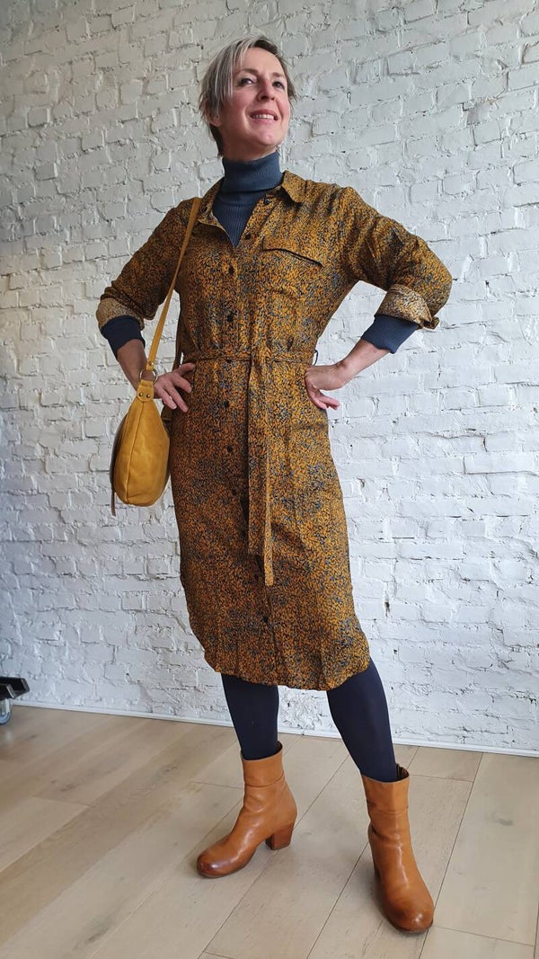 Mooie overhemdjurk met een mooie print. De jurk heeft een kraag, een borstzakje en een riem die je in de taille kunt strikken. Hij wordt gesloten met knopen. Kwaliteit: 100% Viscose