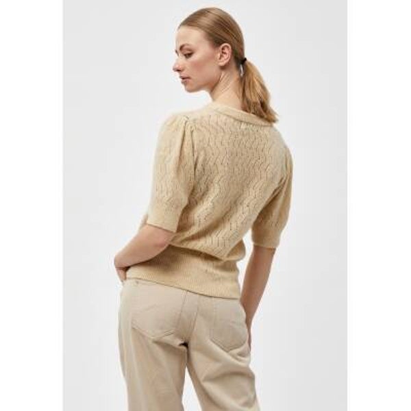 prachtige gebreide cardigan met korte mouwen. Het golfje heeft een v-hals en wordt gesloten door middel van knopen. Het heeft een mooi patroon en rib aan de randen. Samenstelling: 74% acryl, 22% polyester, 4% elastaan