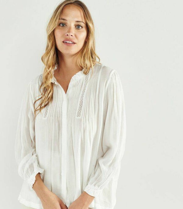 romantische witte blouse met knoopsluiting