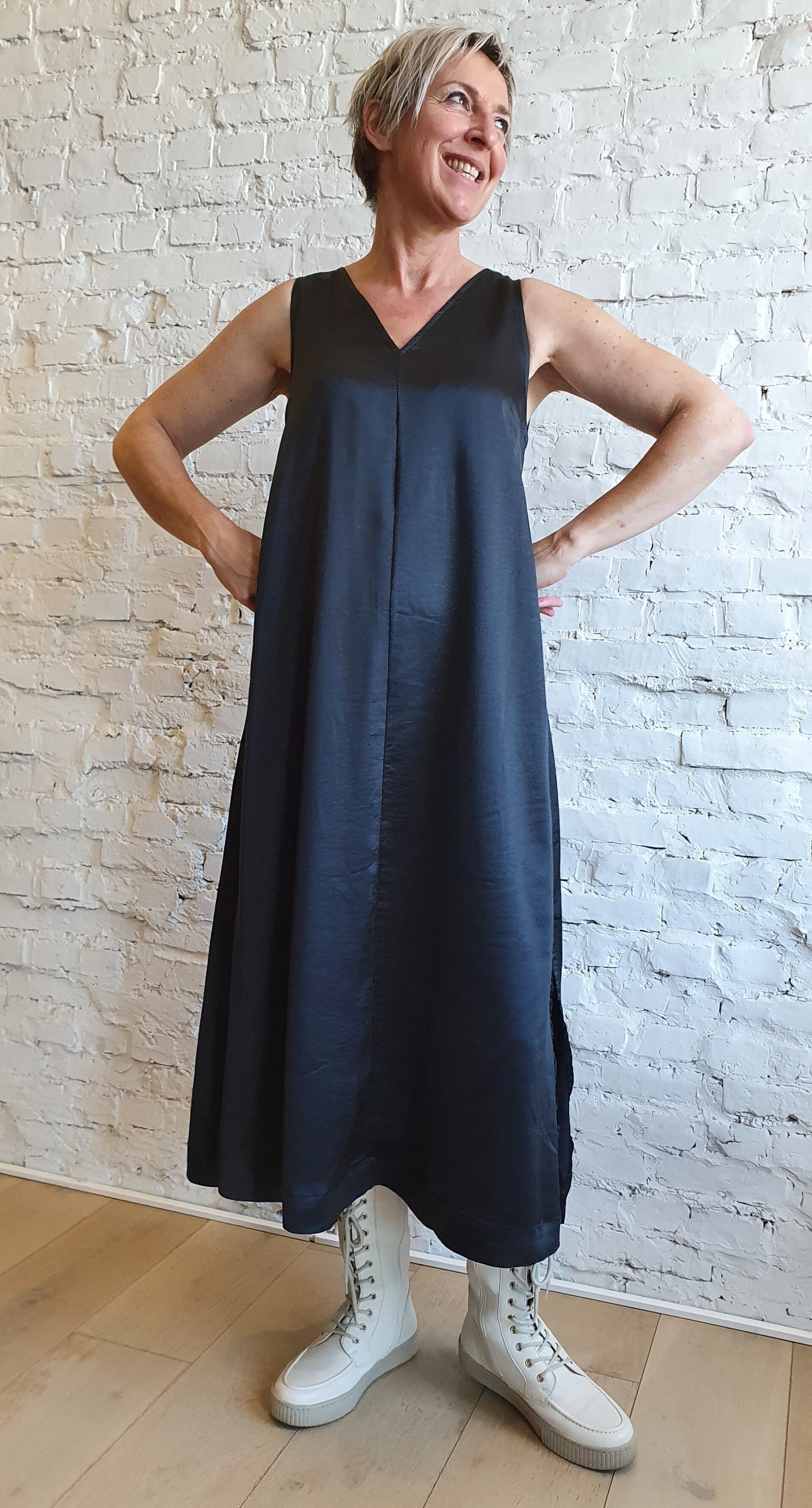 Je kan de jurk op zomerse dagen doordragen met een leuke sandaal of slipper