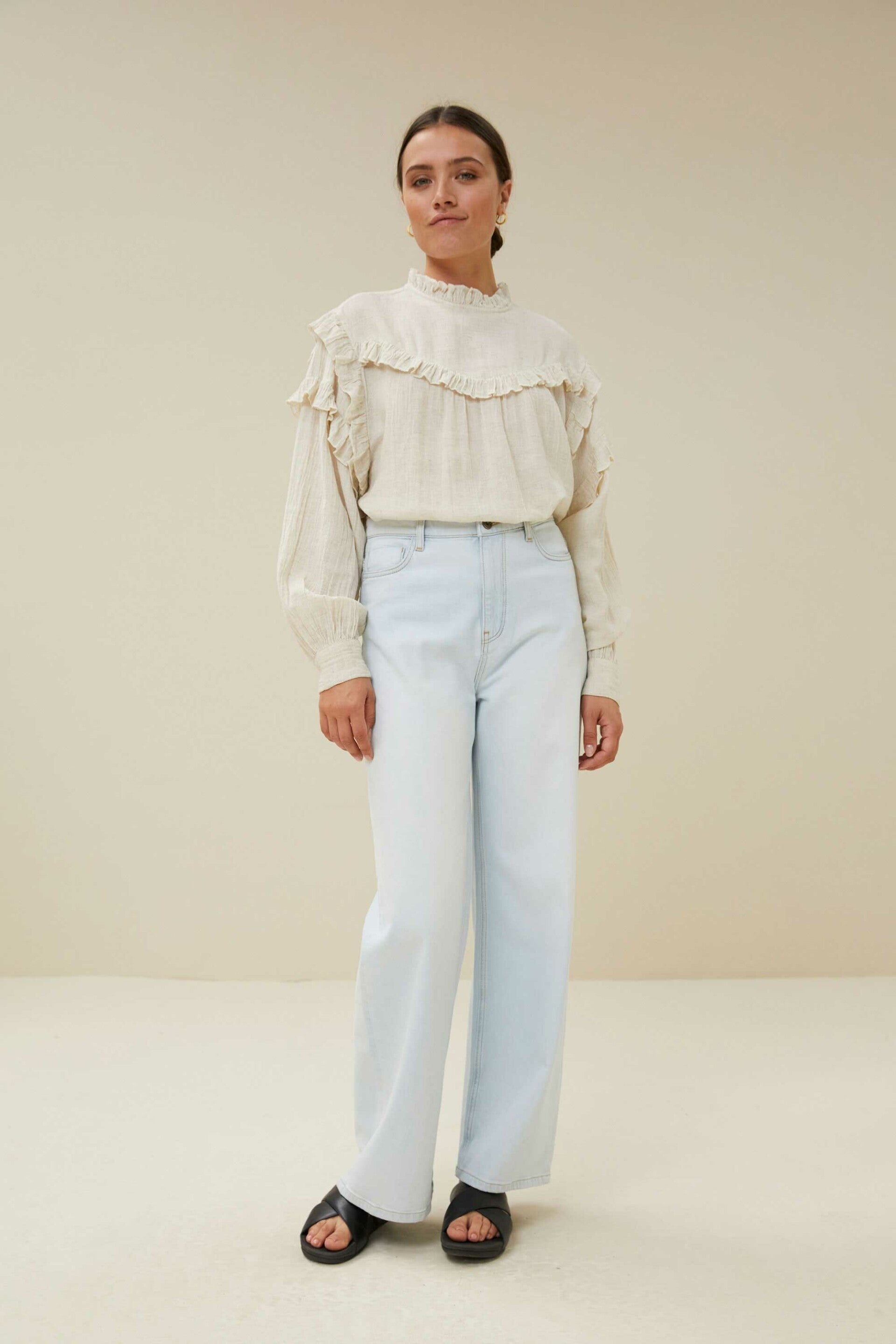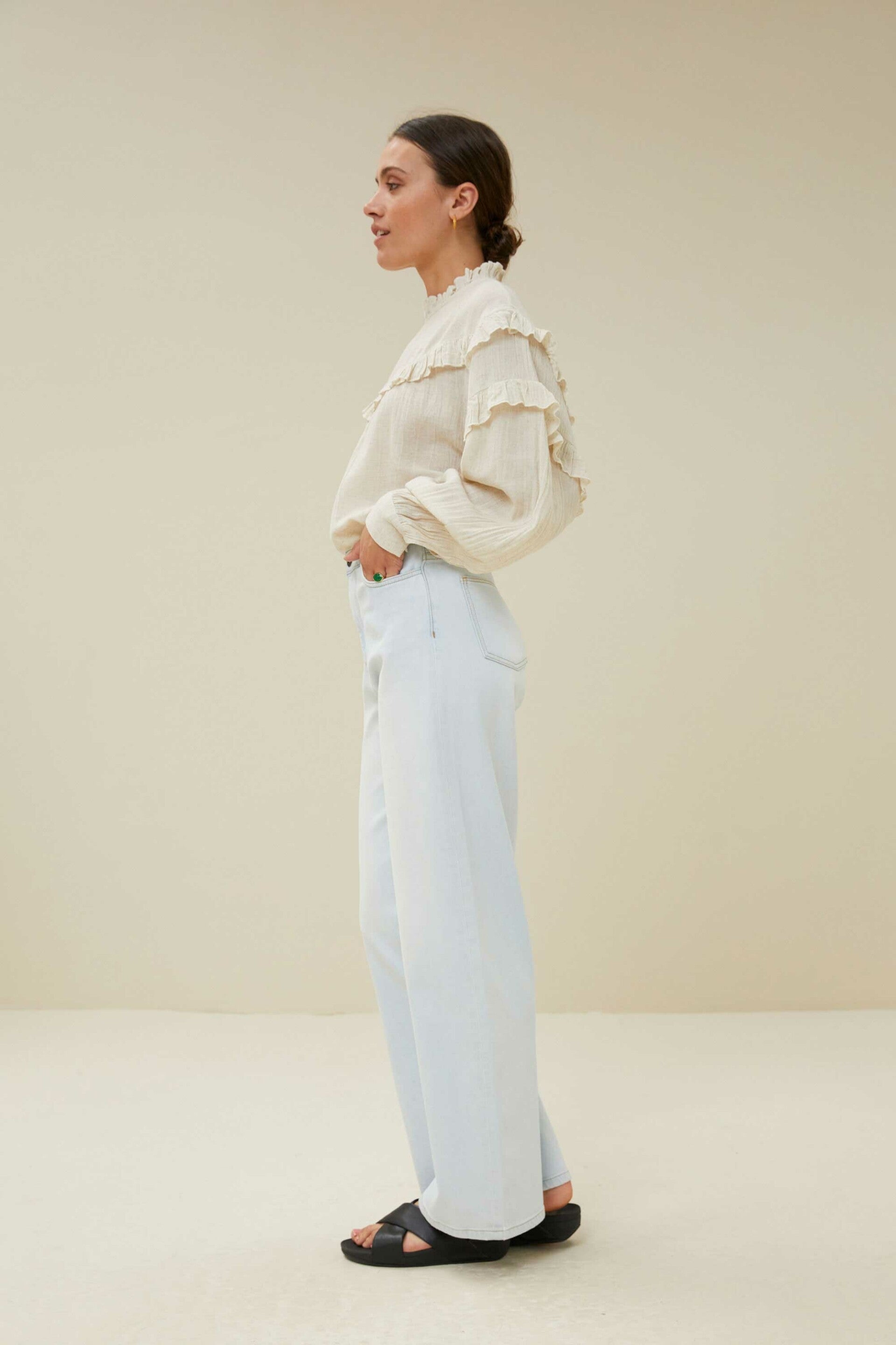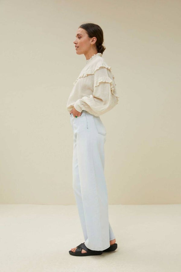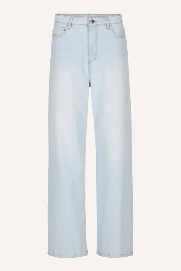 de lina bleach pant is gemaakt van een zachte katoen kwaliteit met een sustainable washing en is gecombineerd met elastaan wat zorgt voor stretch en een optimale pasvorm. het is een lang, rechtvallend model met een hoge taille en een knoop- en ritssluiting aan de voorkant. de lina bleach pant heeft twee steekzakken aan de voorkant en op de achterkant twee broekzakken. de sustainable washing van de jeans wordt gescoord volgens de eim-classificatie. gedurende de productie en het afwerkingsproces, is het gebruik van chemicaliën beperkt en wordt het verbruik van water en energie verminderd.