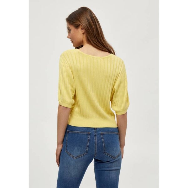 Prachtig ribbeltruitje met v-hals en korte mouwen