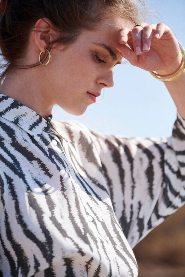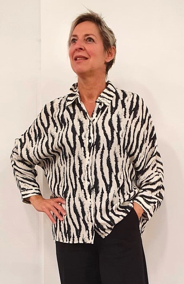 - Blouse met 3/4 vleermuismouwen - Manchetten met een knoop - Omgekeerde plooien midden op de rug - Lengte vanaf de schouder 62 cm voor en 73 cm achter Materiaal: 100% Viscose