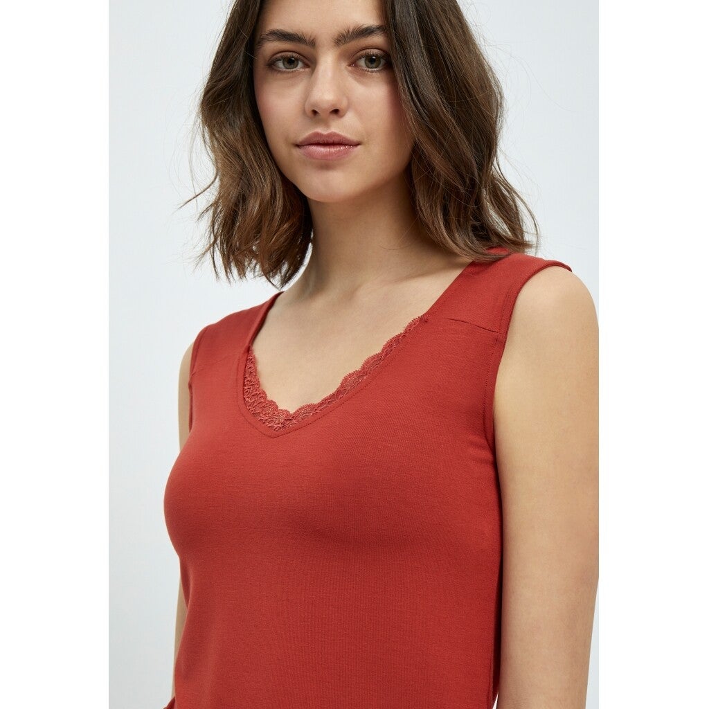 Deze superzachte top is een essential in elke garderobe. Een onmisbare top zonder mouwen en een klein kanten randje aan de kraag. Pasvorm: Normaal Samenstelling: 94% viscose, 6% elasthaan